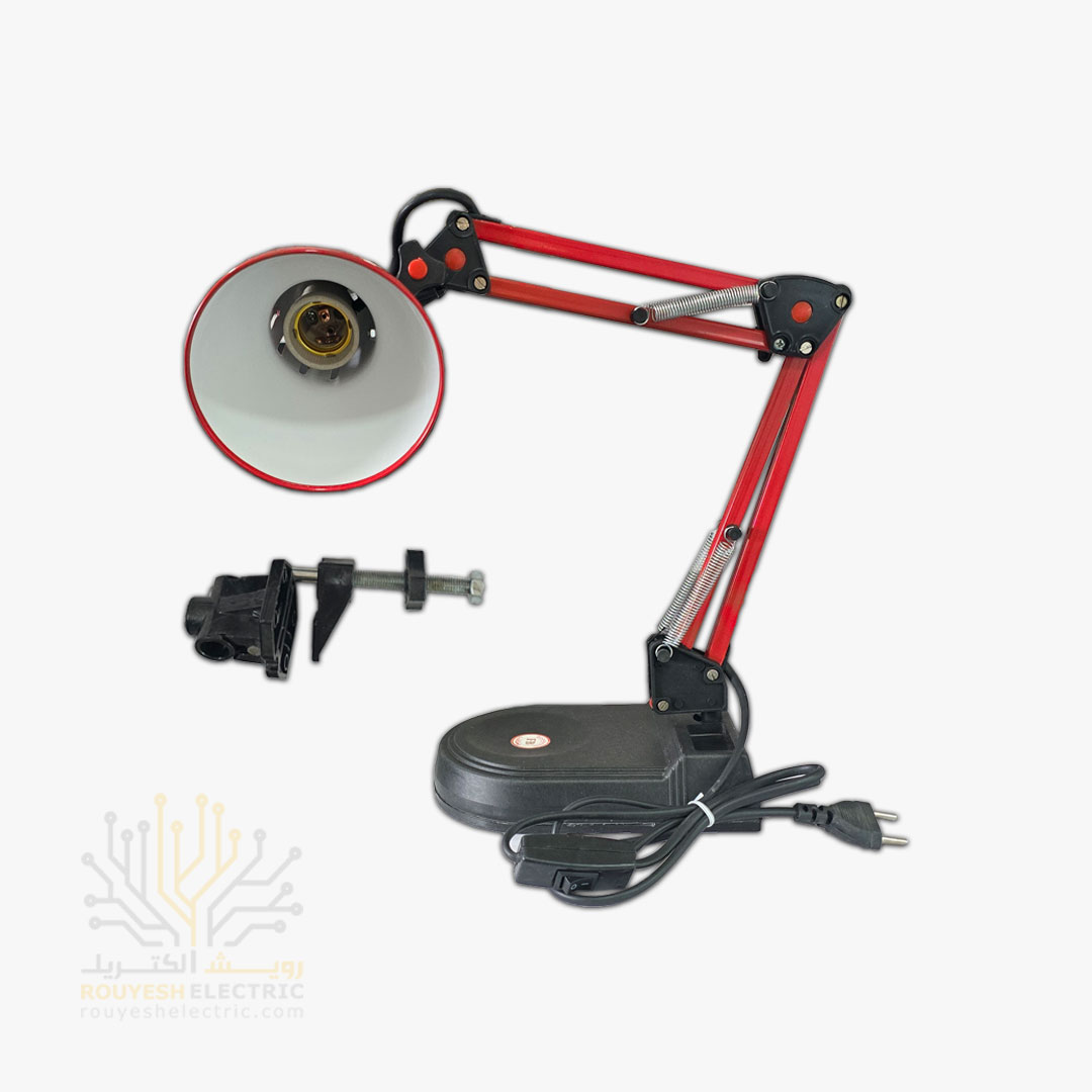 این چراغ با اتصال به برق شهری کار میکند و دارای سرپیچ استاندارد E27 است که امکان استفاده از انواع لامپهای LED، رشتهای یا کممصرف را فراهم میسازد. گردنی فلزی قابل تنظیم آن به کاربر اجازه میدهد زاویه و ارتفاع نور را بهدلخواه تنظیم کند. برخی مدلها دارای کلید روشن/خاموش روی سیم یا بدنه هستند. با توجه به طراحی بازویی و ارتفاع بلند (تا حدود 140 سانتیمتر)، نور بهصورت دقیق روی سطح کار تابیده میشود.