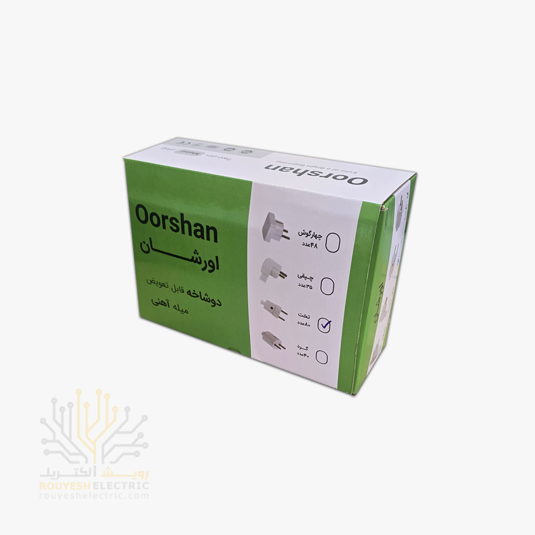 این دوشاخه، یک رابط الکتریکی است که با طراحی تخت و داشتن پینهایی از جنس میله آهنی، برای اتصال به پریزهای برق طراحی شده است. شکل تخت آن ممکن است برای استفاده در فضاهای محدودتر یا پریزهایی با طراحی خاص مناسب باشد. میلههای آهنی به عنوان بخش رسانای اصلی عمل میکنند که جریان برق را از پریز به دستگاه منتقل میکنند. بدنهی این دوشاخه معمولاً از مواد عایق ساخته میشود تا ایمنی کاربر را تامین کند.