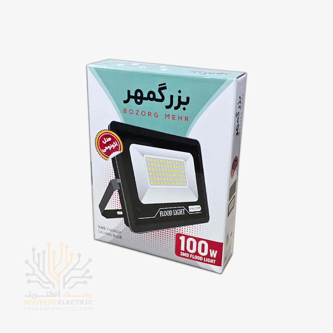 پروژکتور 100 وات SMD برند بزرگمهر مدل اکونومی بدنه مشکی مهتابی بدون درایور