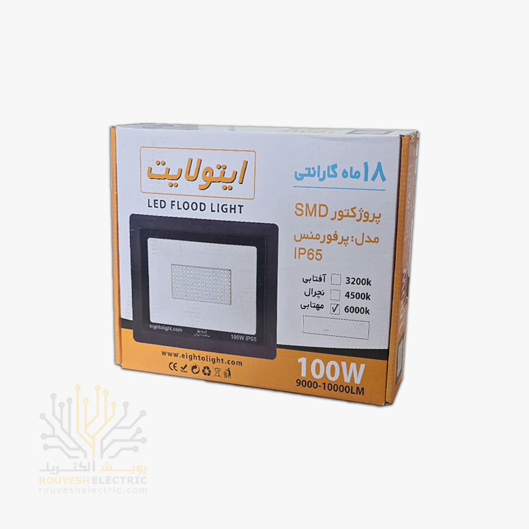 پروژکتور 100 وات SMD برند ایتولایت بدنه مشکی مهتابی