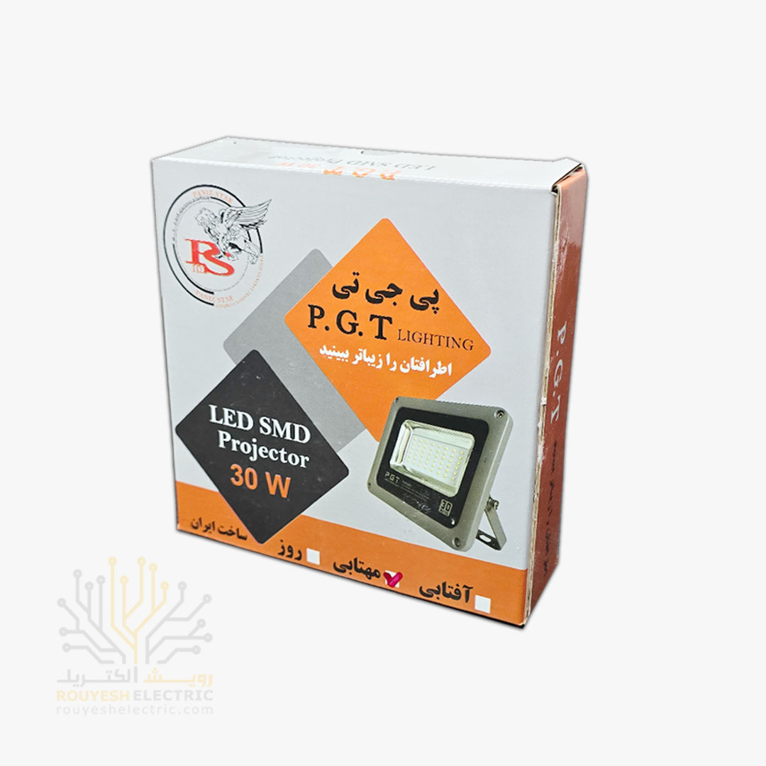 پروژکتور 30 وات SMD برند پی جی تی PGT سری گلد درایور دار مهتابی