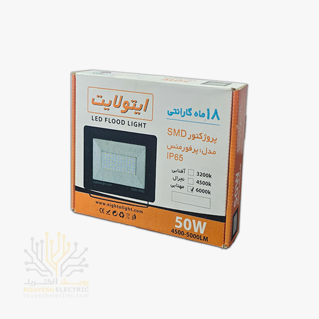 پروژکتور 50 وات SMD برند ایتو لایت بدنه مشکی مهتابی