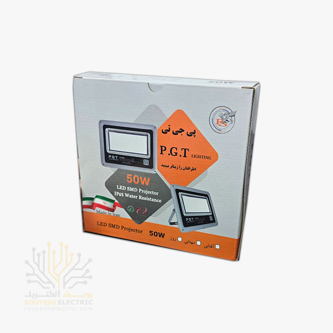 پروژکتور 50 وات SMD برند پی جی تی سری گلد، یک نوع نورپراکننده قدرتمند و کم‌مصرف است که برای روشنایی فضای باز، محوطه‌سازی، نماهای ساختمانی، illuminated signage، و lighting برای رویدادهای خارجی مورد استفاده قرار می‌گیرد. این محصول با توان 50 وات، نوری با شدت مناسب و یکنواخت تولید می‌کند و در اماکن صنعتی، تجاری و شهری کاربرد زیادی دارد.