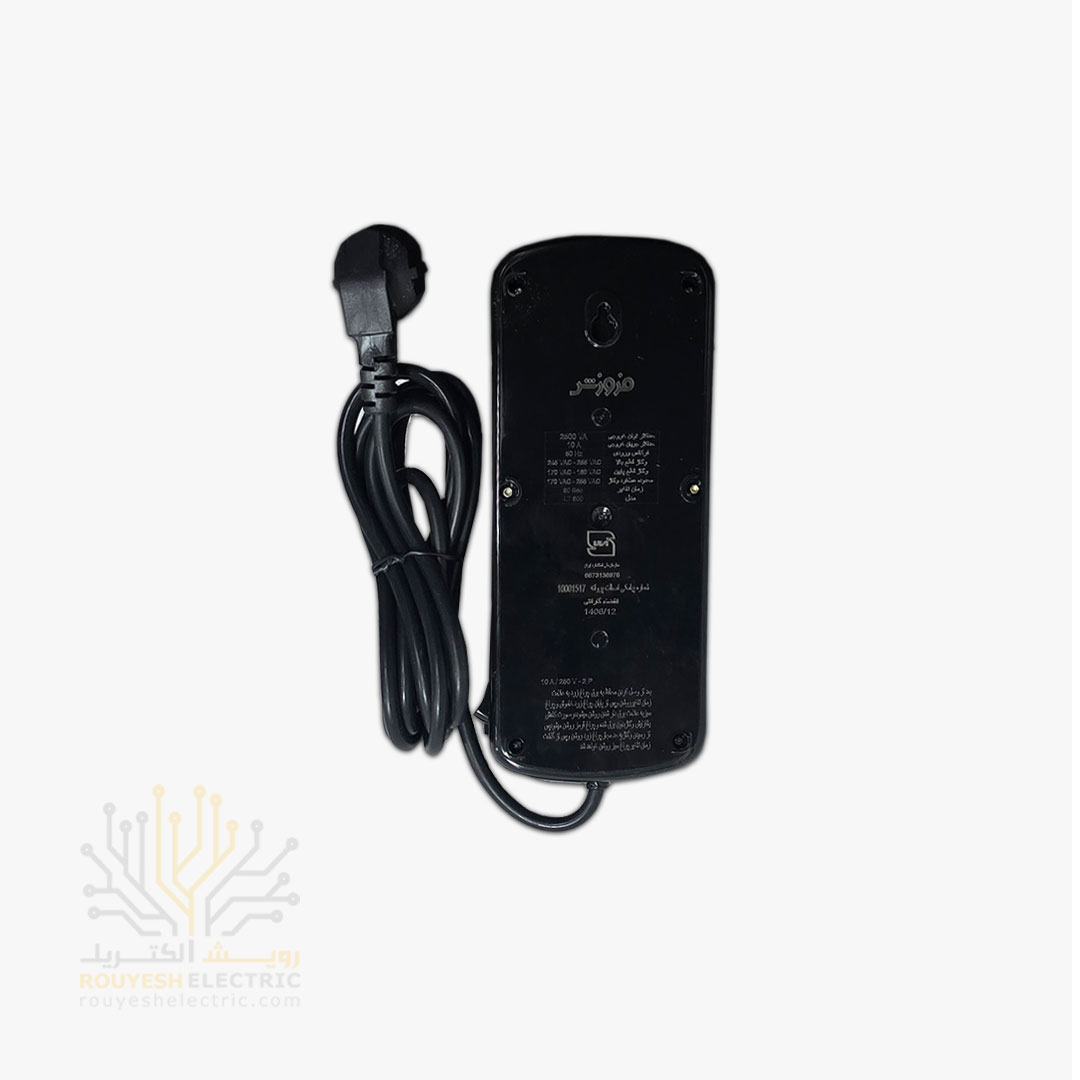 محافظ برق کامپیوتر سیار شش خانه برند فروزش مدل LT600 لوتوس بدون ارت بدون کلید بدنه مشکی آنالوگ 1/8 متری
