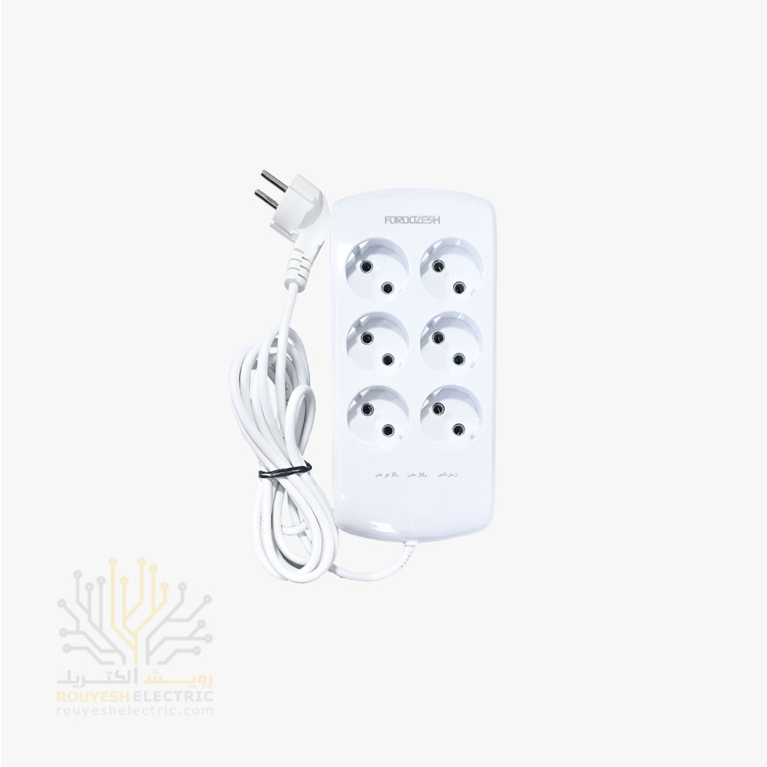 محافظ برق کامپیوتر سیار شش خانه برند فروزش مدل FR600 بدون ارت کلید دار بدنه سفید آنالوگ 2/8 متری