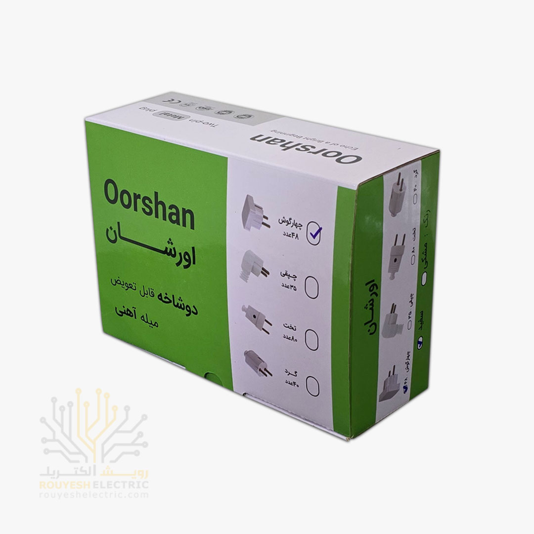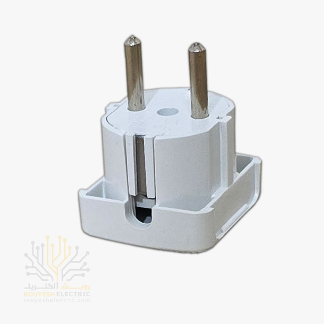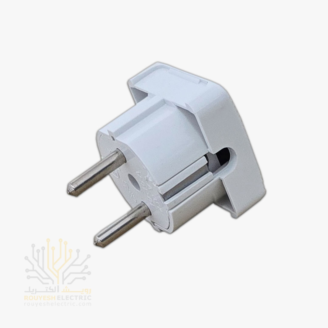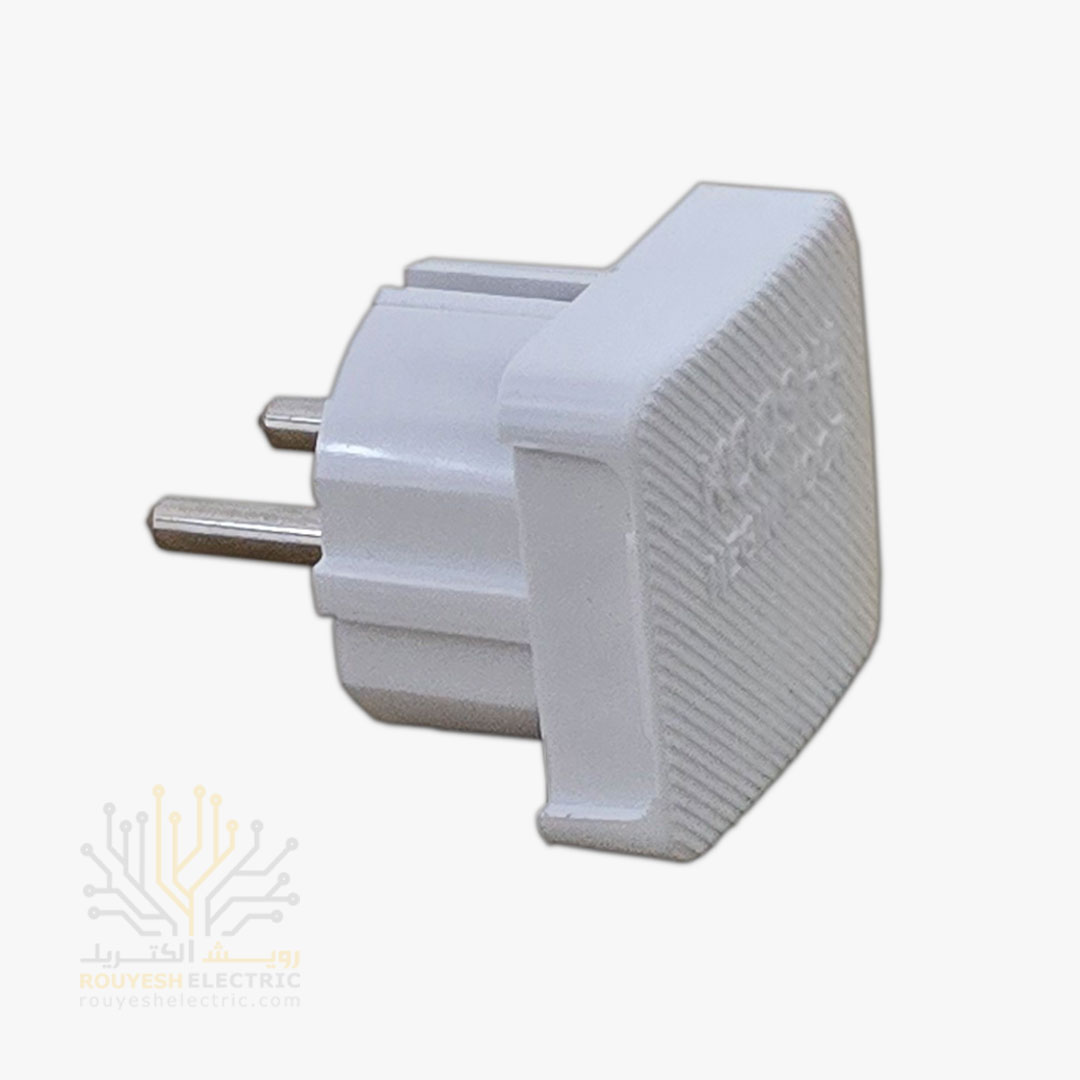 دوشاخه برق یه قطعه‌ی کوچیکه که به انتهای سیم وسایل برقی وصل می‌شه و جریان برق رو از پریز به دستگاه منتقل می‌کنه. ظاهرش مربعیه و بدنه‌اش معمولاً سفید و فلزیه تا هم دوامش بالا باشه هم ظاهر تمیزی داشته باشه. این دوشاخه بیشتر برای استفاده روزمره طراحی شده و به سادگی توی خونه، محل کار یا کارگاه می‌تونه کار راه‌انداز باشه.