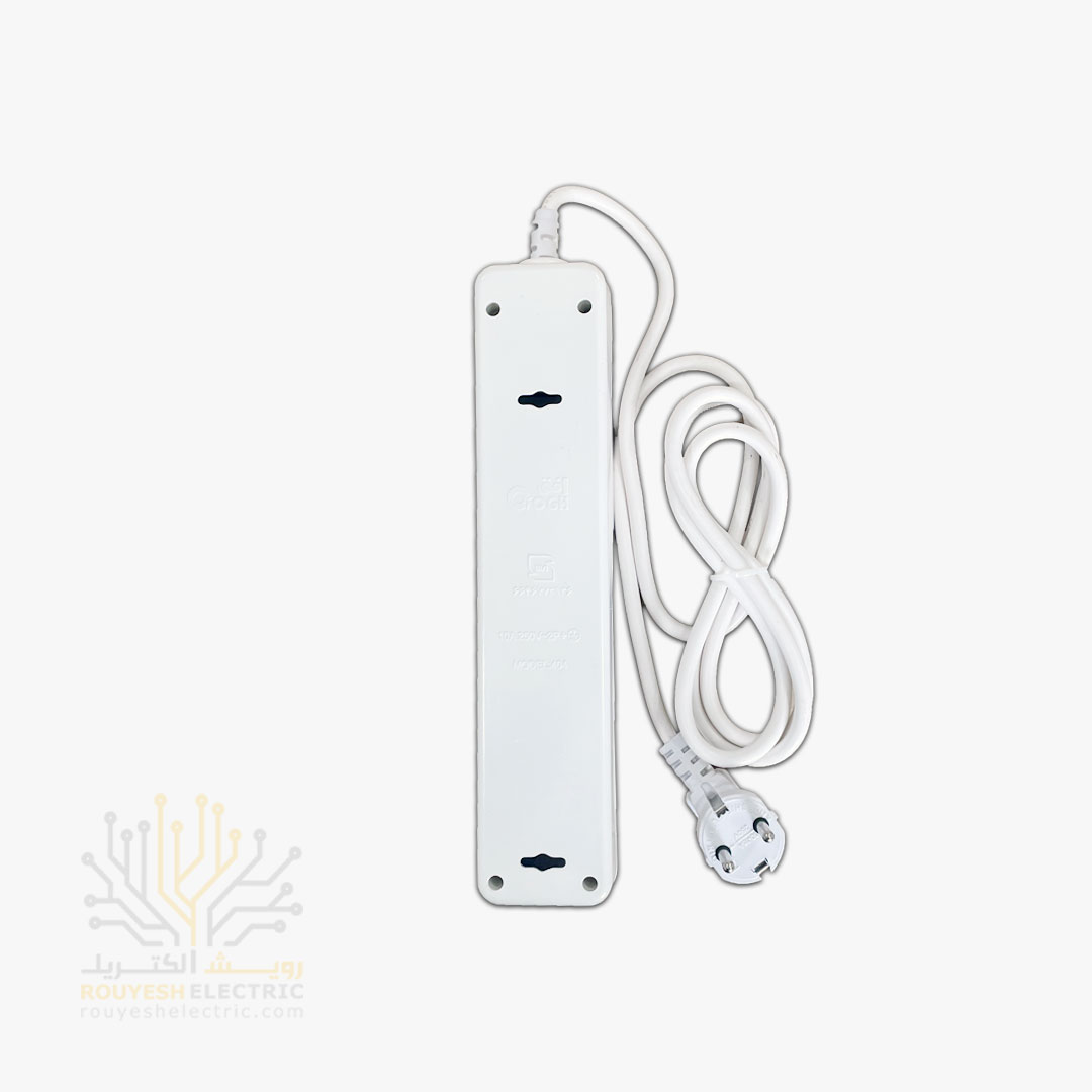 این محصول یه چندراهی برق با بدنه پلاستیکیه و میتونی راحت روی دیوار نصبش کنی. یه کلید داره که روشن و خاموش کردنش رو راحت میکنه و چهار ورودی برای وصل کردن وسایل برقی مختلف داره. کابلش هم 1/8 متریه و استاندارد، یعنی آزادی عمل خوبی داری برای جا به جایی وسایل برقی دورتر از پریز.