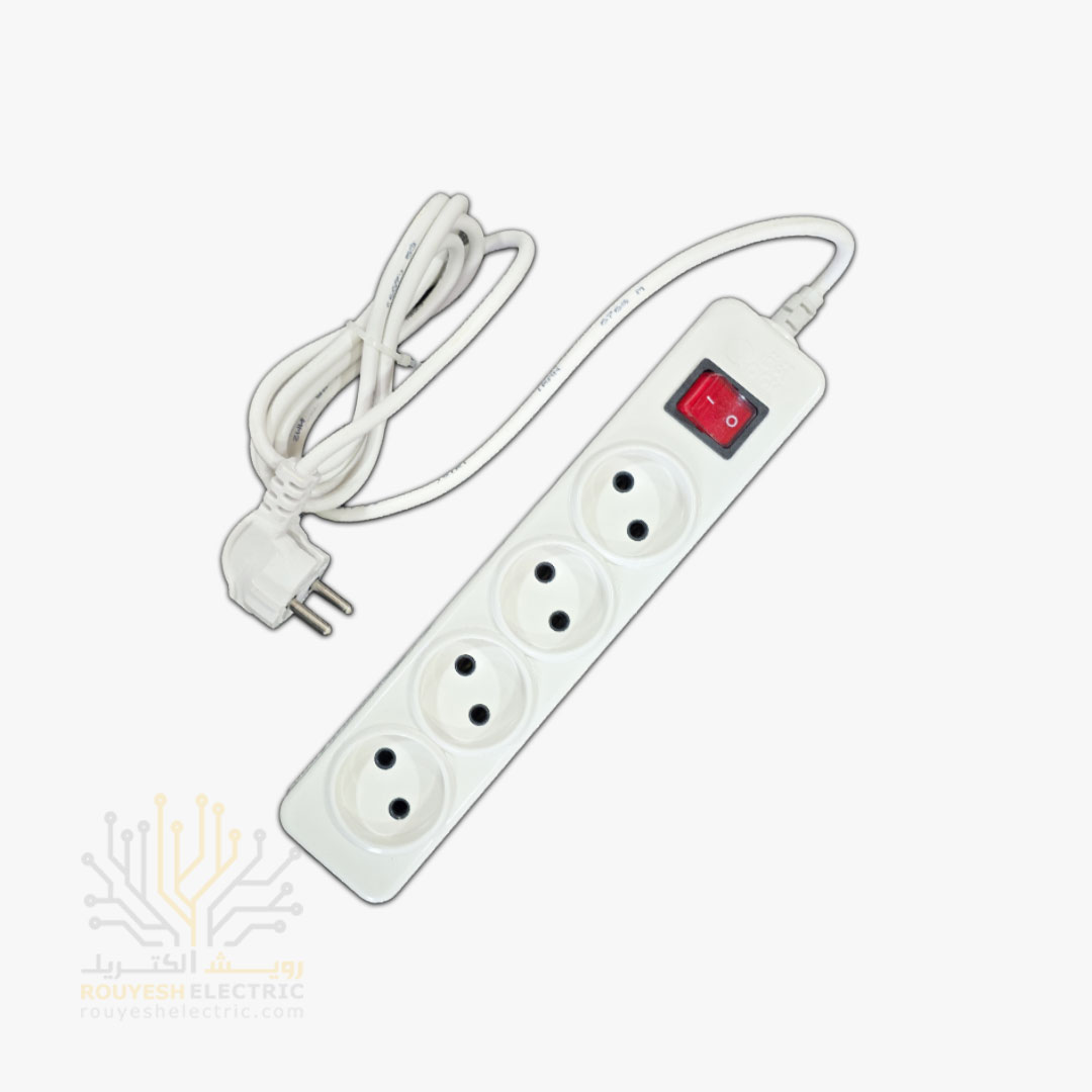 این چندراهی برق، چهار ورودی داره که میتونی وسایل مختلف رو بهش وصل کنی و یه کلید داره که روشن و خاموش کردنش رو راحت میکنه.
