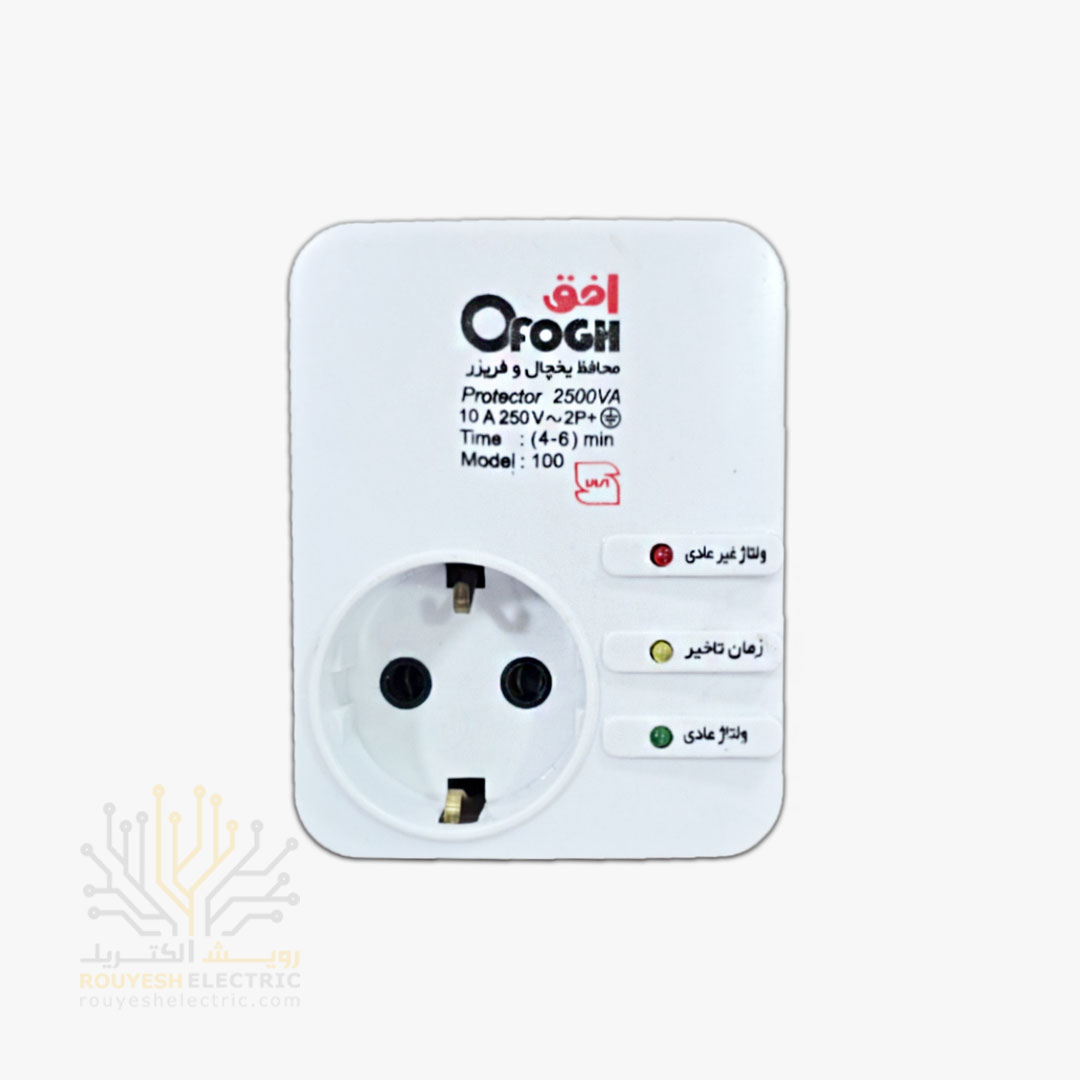 محافظ برق پکیج تک خانه دیواری برند افق مدل 105 استاندارد ارتدار کلید دار آنالوگ