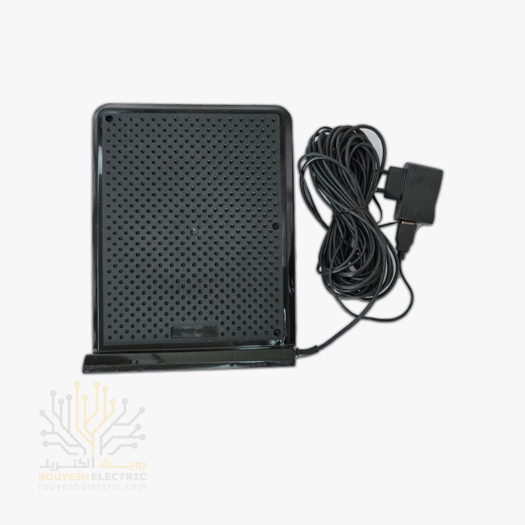 این آنتن رومیزی، طراحی مستطیلی و جمع‌وجوری داره و به راحتی روی میز یا کنار تلویزیون جا می‌شه. ابعادش حدود ۲۰ سانت طول، ۷ سانت عرض و ۲۵ سانت ارتفاع هست و بدنه‌اش از پلاستیک مقاوم و به رنگ مشکی ساخته شده که هم زیباست و هم سبک. هر بسته شامل یک عدد آنتن به همراه آداپتور می‌باشه و در جعبه کارتنی قرار داره. مناسب برای فروش تکی یا سفارش‌های بیشتر، چون هر کارتن شامل ۲۰ عدد آنتن هست.