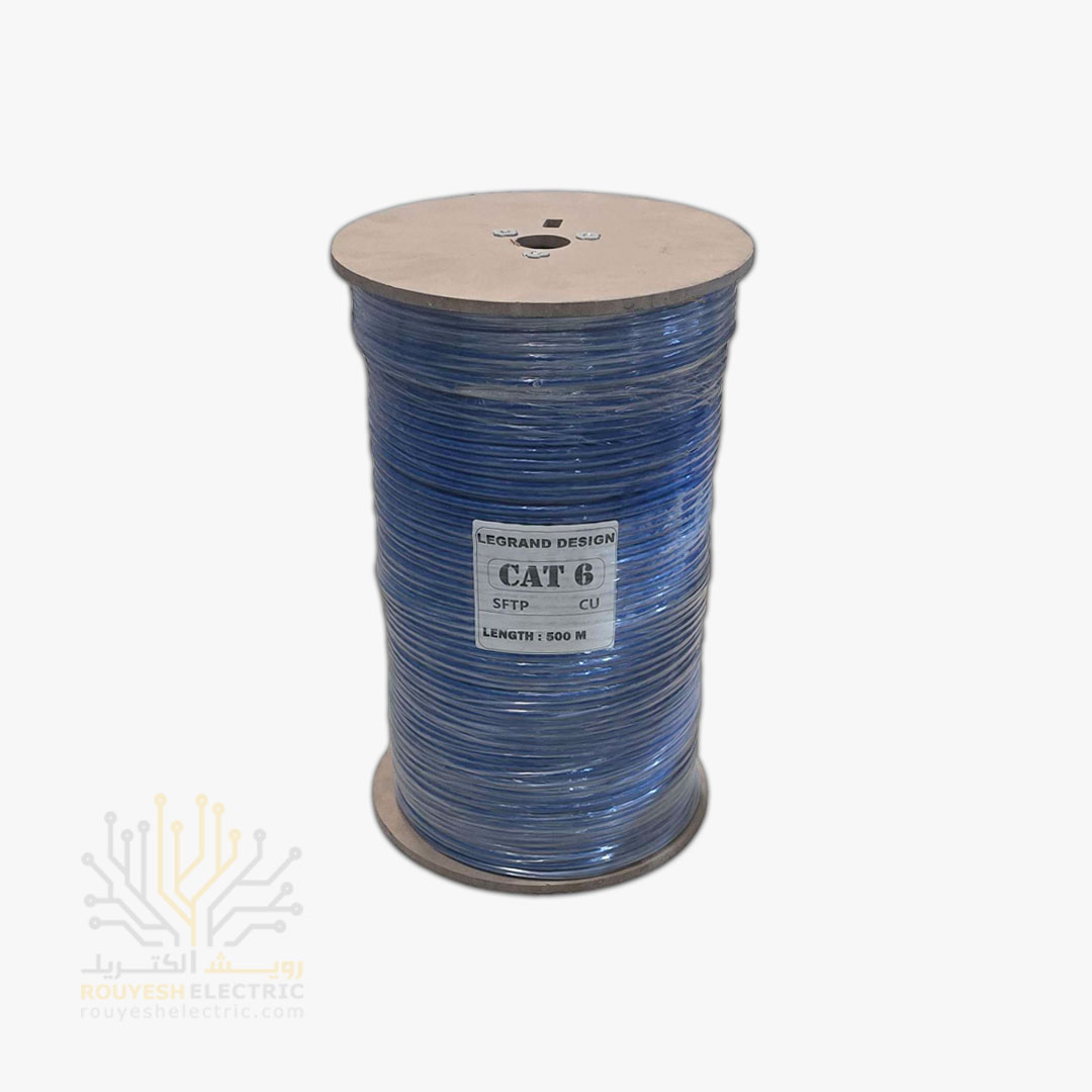 کابل شبکه cat six برند تک کابل کرمان مدل لگرند شیلد دار sftp قرقره 500 متری