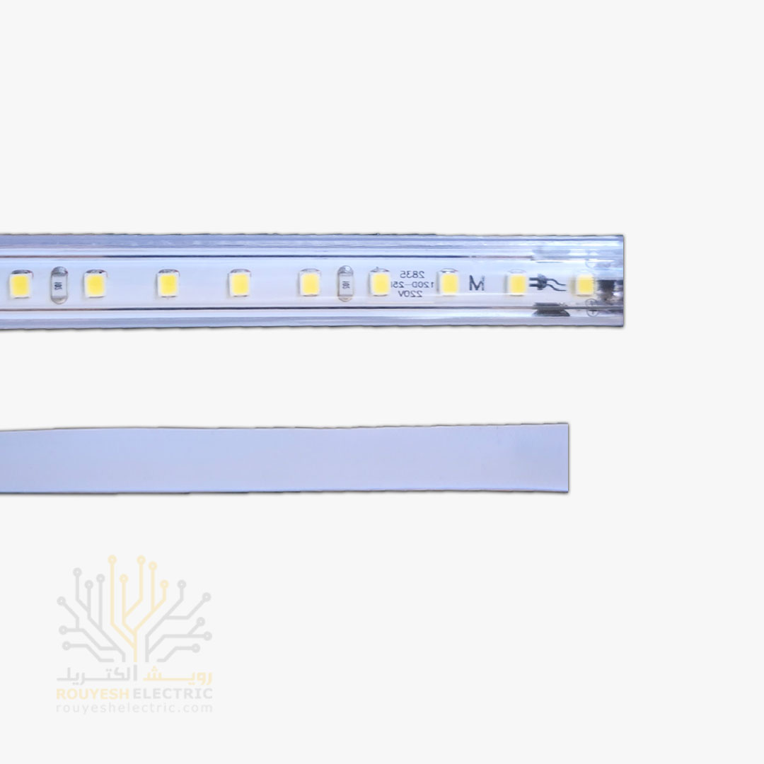 این ریسه با ولتاژ مستقیم 220 ولت کار می‌کند و نیازی به ترانس یا درایور ندارد. چیپ‌های LED مدل 2835 روی بورد داخلی قرار گرفته‌اند و با طراحی وایرلس، نصب آن بسیار ساده و سریع انجام می‌شود. قابلیت برش در هر 20 سانتی‌متر، امکان تنظیم طول دلخواه را فراهم می‌کند.