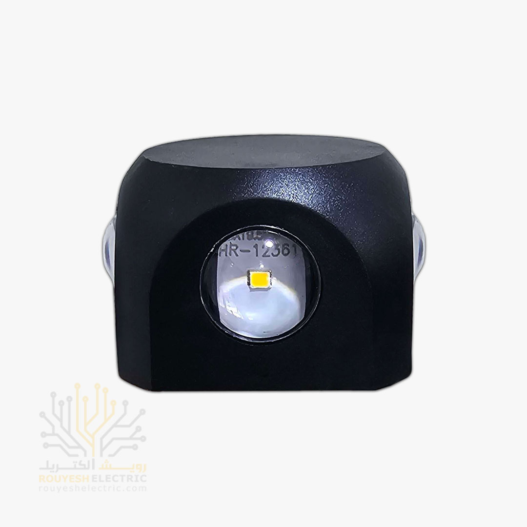 چراغ دیواری دکوراتیو 6 وات برند ایران مهر مدل کلبه ای دو طرفه کد ایران 50 بدنه مشکی نور نچرال