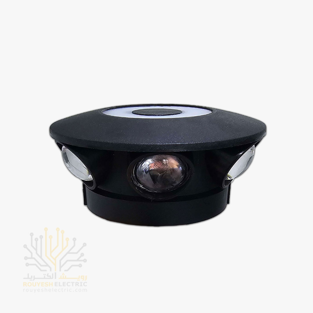 چراغ دیواری دکوراتیو 3 وات برند ایران مهر مدل کلبه ای یک طرفه کد ایران 49 بدنه مشکی نور نچرال