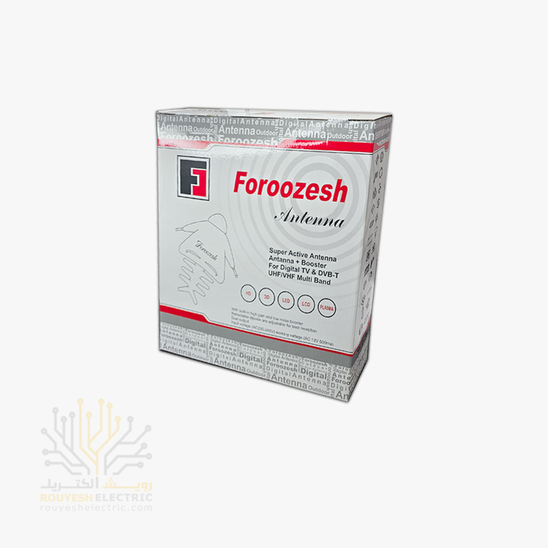 این آنتن تو ایران ساخته شده و ورودی برقش ۱۲ ولت هست و خروجیش برای فیش رسیوری طراحی شده. یه تقویتکننده مجزا هم داره که کیفیت سیگنال رو بهتر میکنه.