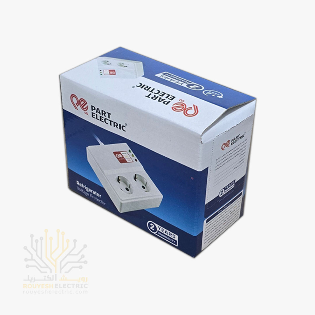 محافظ برق یخچال سیار دو خانه برند پارت الکتریک کد 903 ارتدار مغزی سرامیک 10 آمپر بدنه سفید آنالوگ 1/8 متری