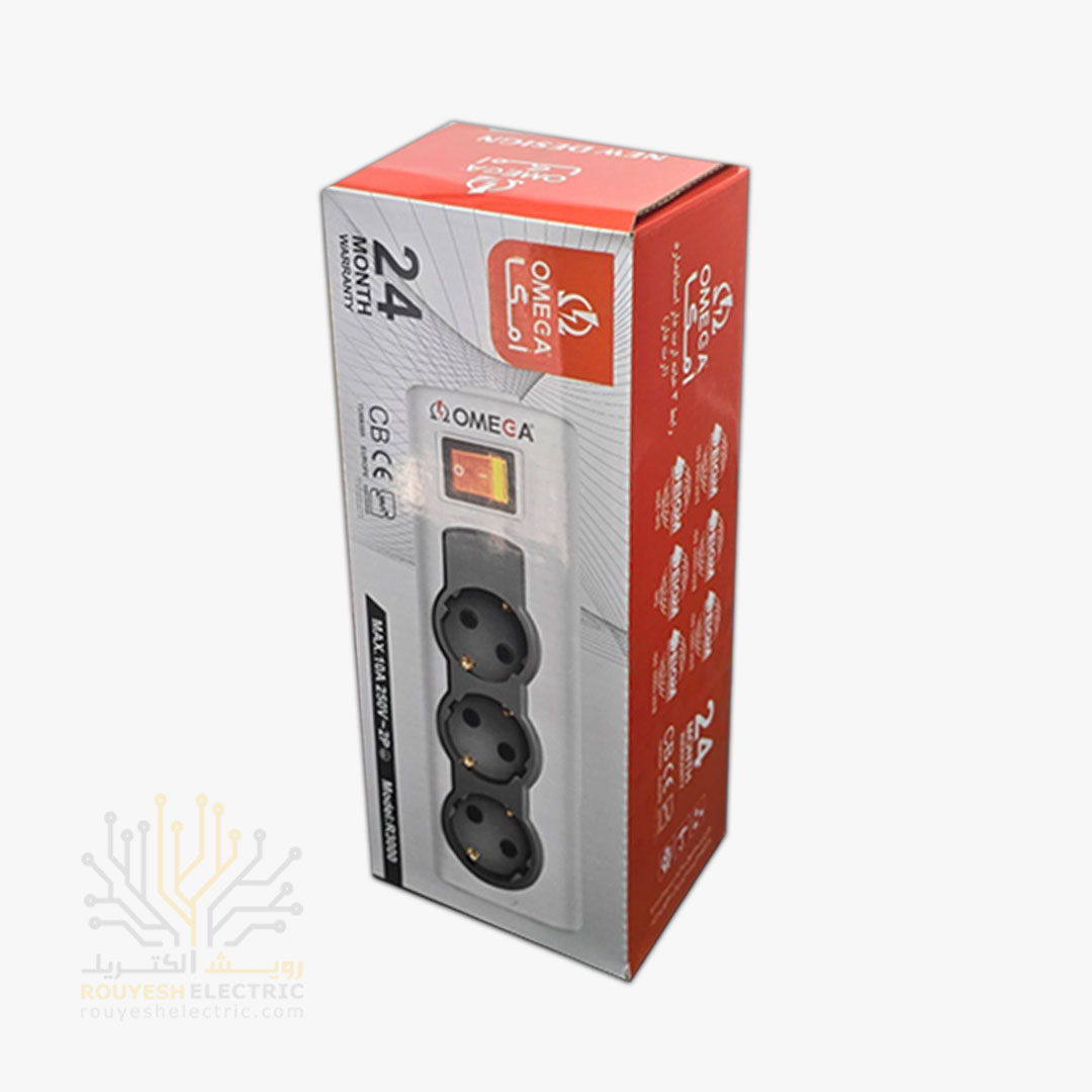 سه راهی برق سیار برند امگا مدل RD3000 کلید دار استاندارد 5 متری