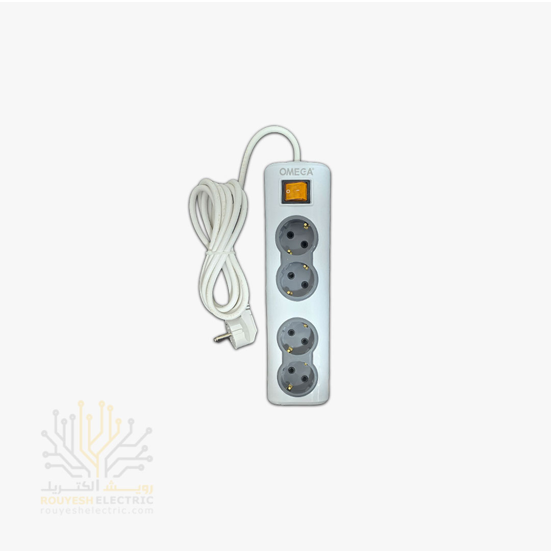 چهار راهی برق سیار برند امگا مدل R4000 ارتدار کلید دار استاندارد کابل 3 متری