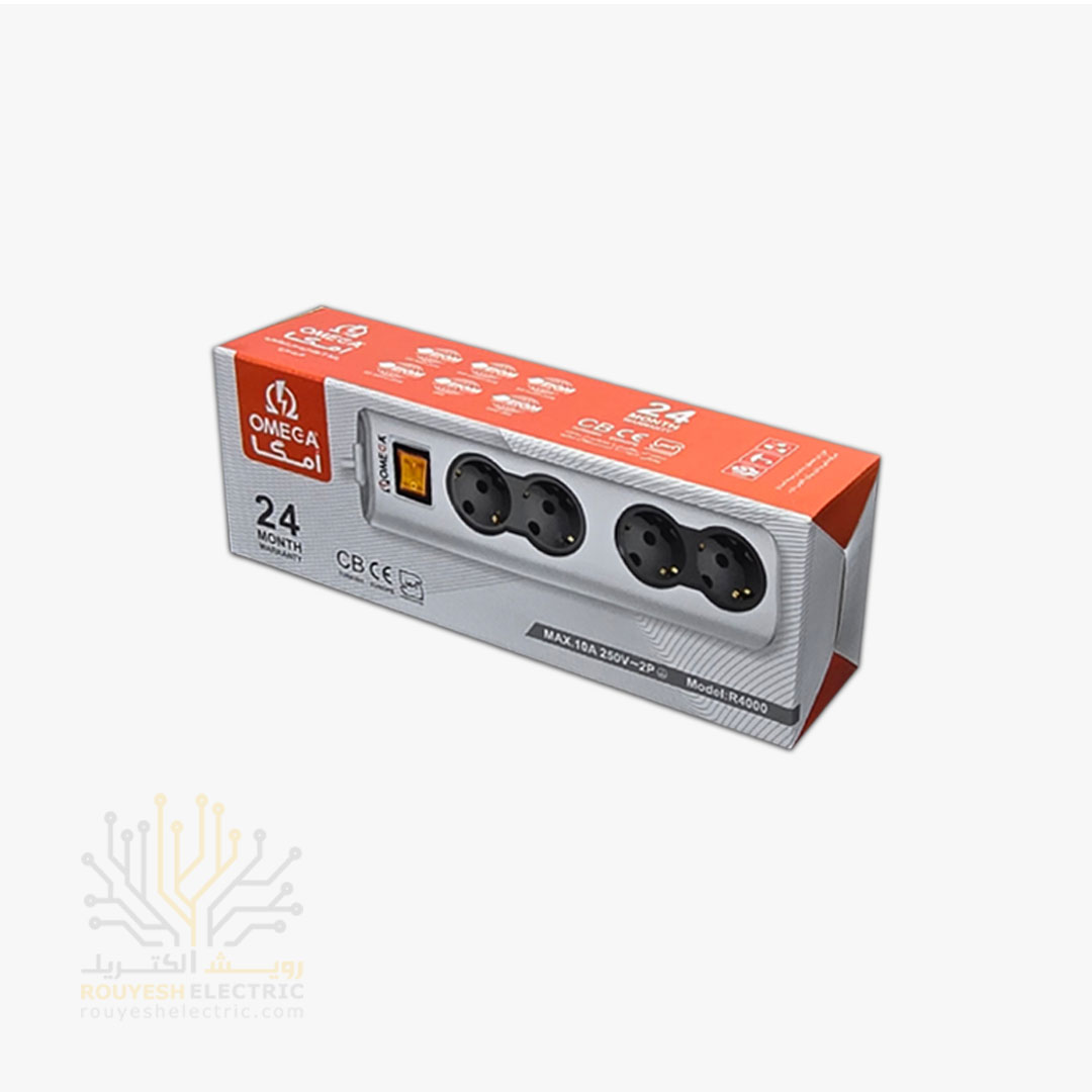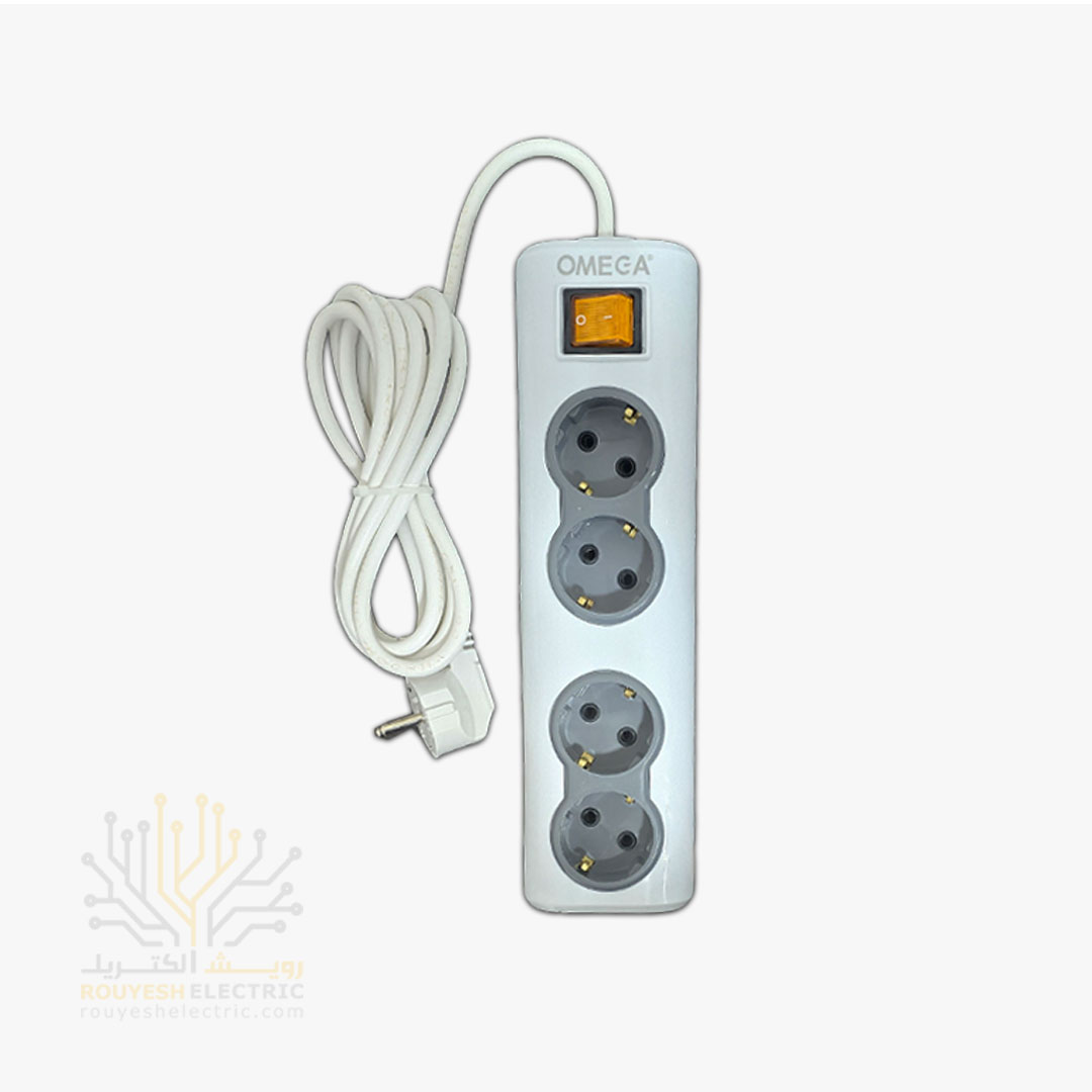 چهار راهی برق سیار برند امگا مدل R4000 ارتدار کلید دار استاندارد کابل 5 متری