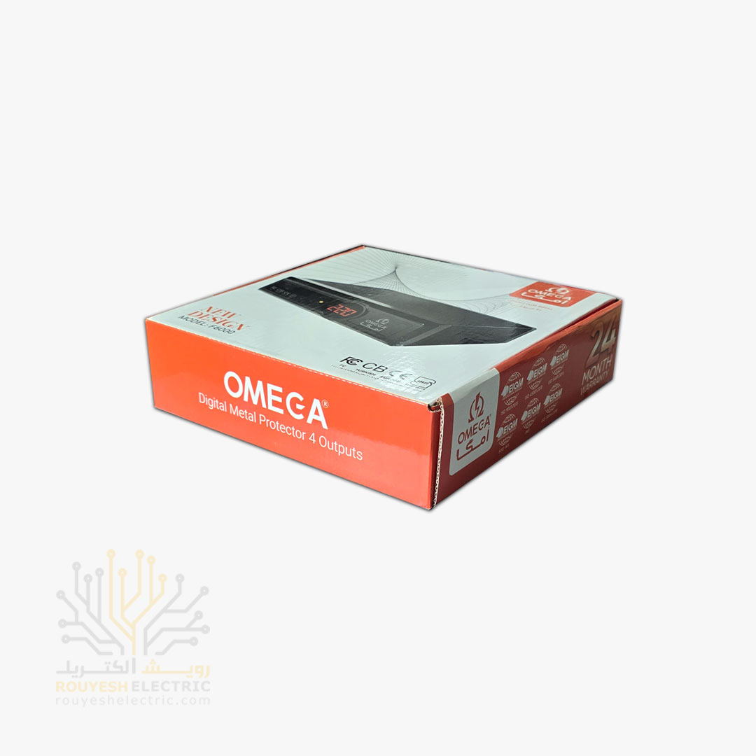 محافظ برق کامپیوتر سیار چهار خانه فلزی برند امگا مدل F6000 بدون ارت استاندارد دیجیتال 2 متری