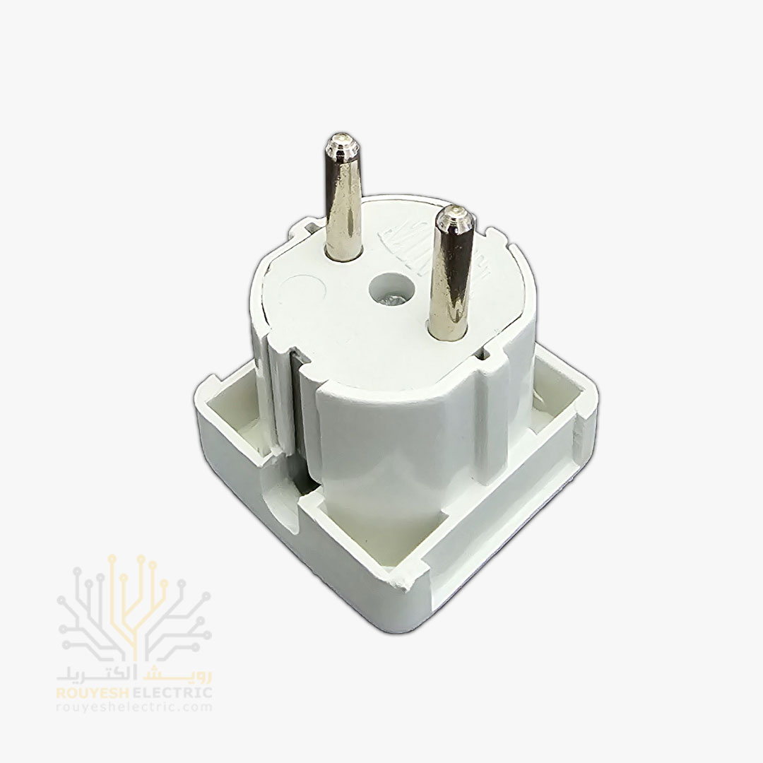 دوشاخه برق یه قطعه‌ی کوچیکه که به انتهای سیم وسایل برقی وصل می‌شه و جریان برق رو از پریز به دستگاه منتقل می‌کنه. میله آهنی به کار رفته در اون، استحکام و دوام خوبی به دوشاخه می‌بخشه و رنگ سفیدش، ظاهری ساده و تمیز بهش می‌ده. این نوع دوشاخه معمولاً برای اتصال به پریزهایی که فضای کافی دارن و یا زمانی که نیاز به یک اتصال محکم و بدون جابجایی هست، مناسبه.