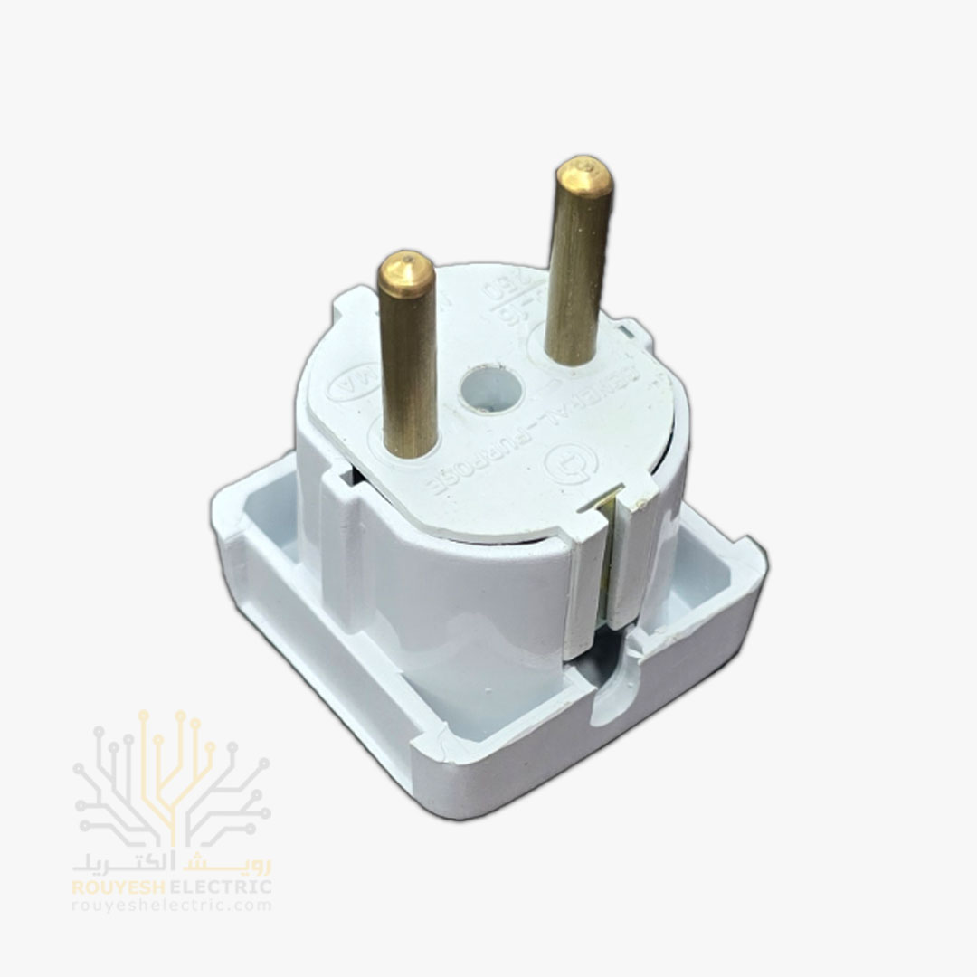 این دوشاخه برق با شکل مربع و میلههای اتصال از جنس برنج، به رنگ سفید عرضه میشود. برنج به دلیل رسانایی الکتریکی خوب و مقاومت در برابر خوردگی، انتخاب رایجی برای قطعات اتصال الکتریکی است. طراحی مربع شکل ممکن است برای کاربردهای خاص یا انطباق با پریزهای غیر استاندارد به کار رود.
