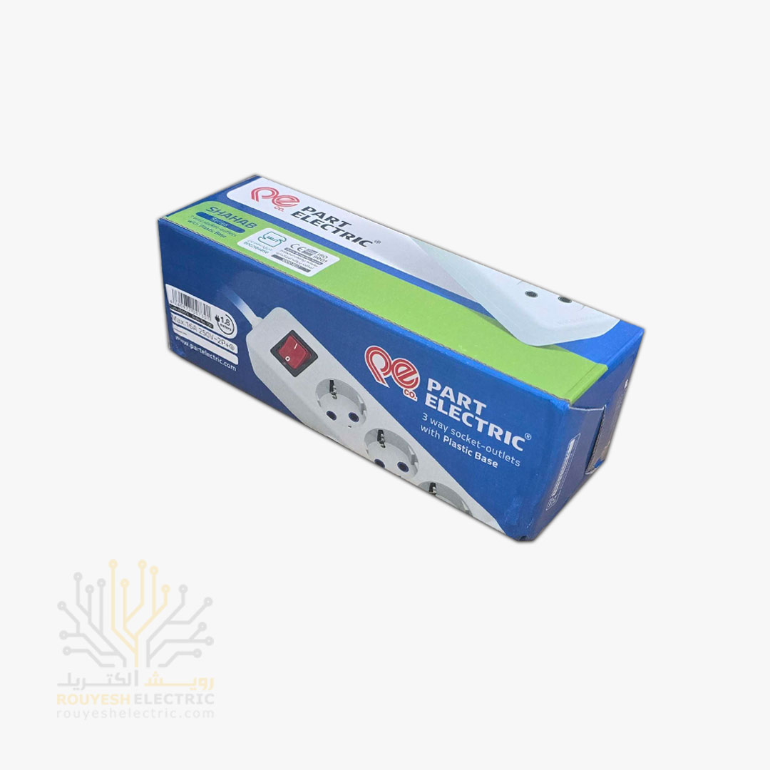 سه راهی برق سیار برند پارت الکتریک مدل شهاب 0512 استاندارد کلید دار کابل 1/8 متری
