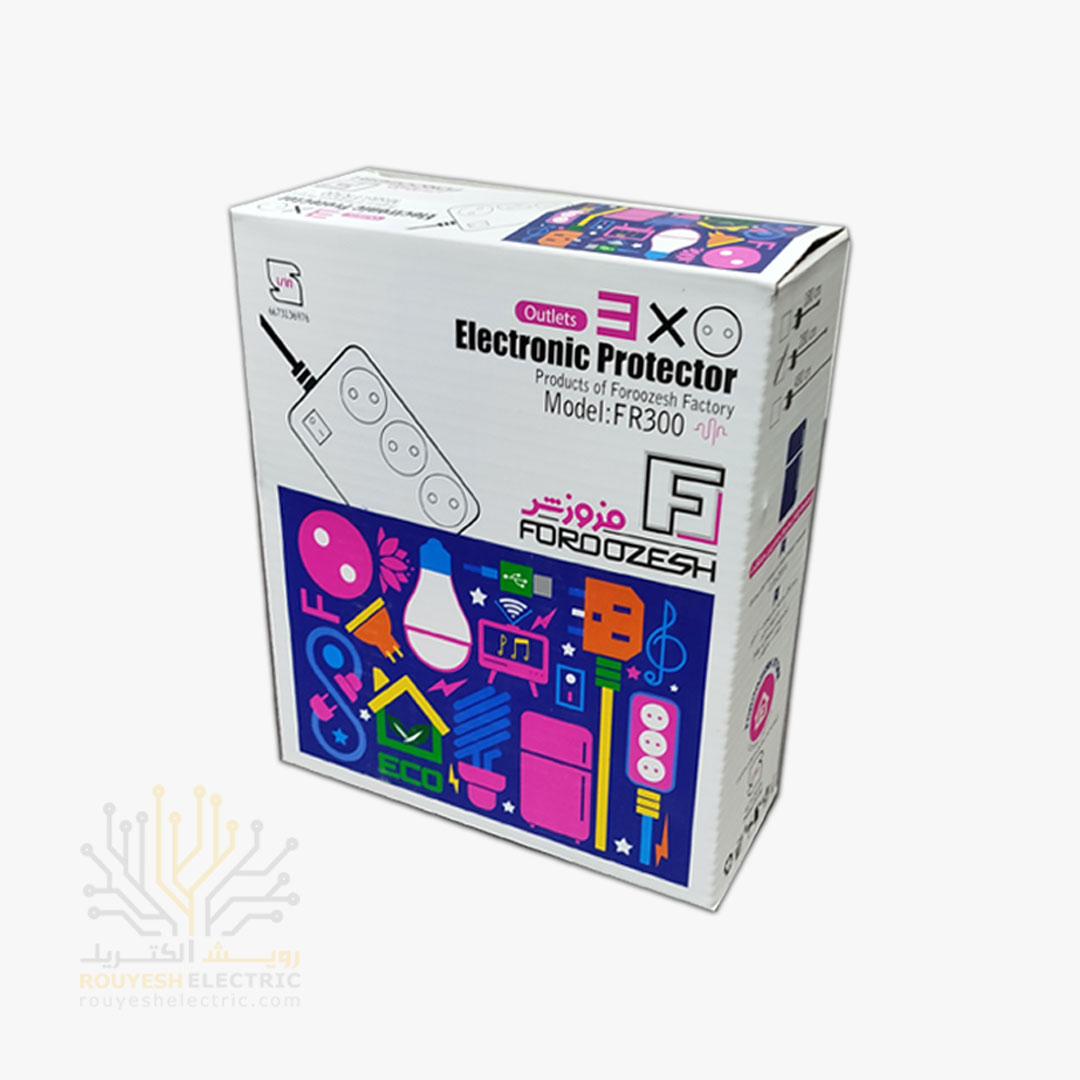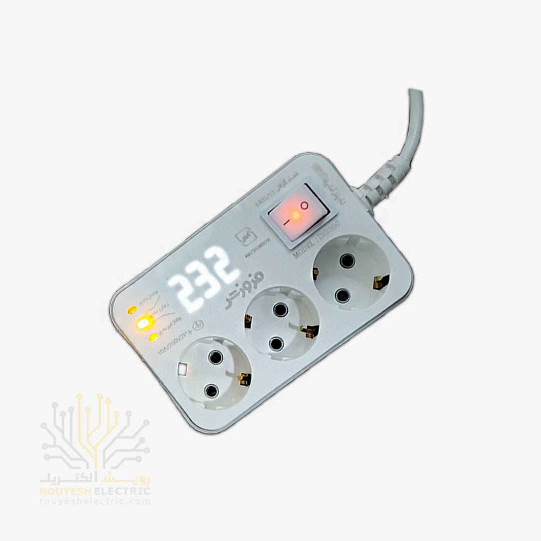 محافظ برق یخچال برند فروزش مدل DG300 ارتدار کلید دار 3 خانه دیجیتال 2/8 متری