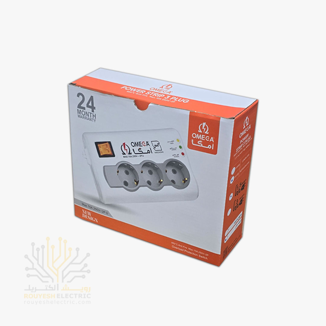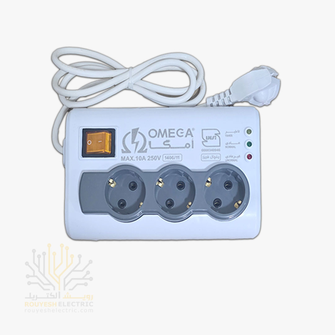 محافظ برق یخچال سیار سه خانه برند امگا مدل p3100 استاندارد ارتدار کلید دار 1/5 متری