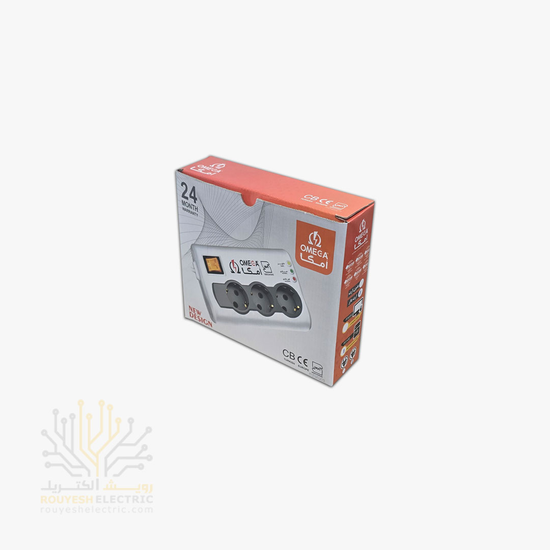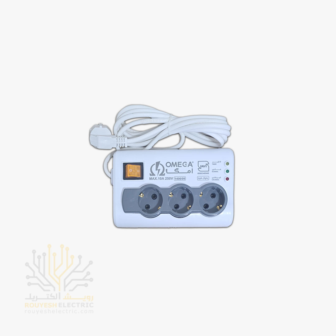 محافظ برق یخچال سیار سه خانه برند امگا مدل p3100 استاندارد ارتدار کلید دار 3 متری