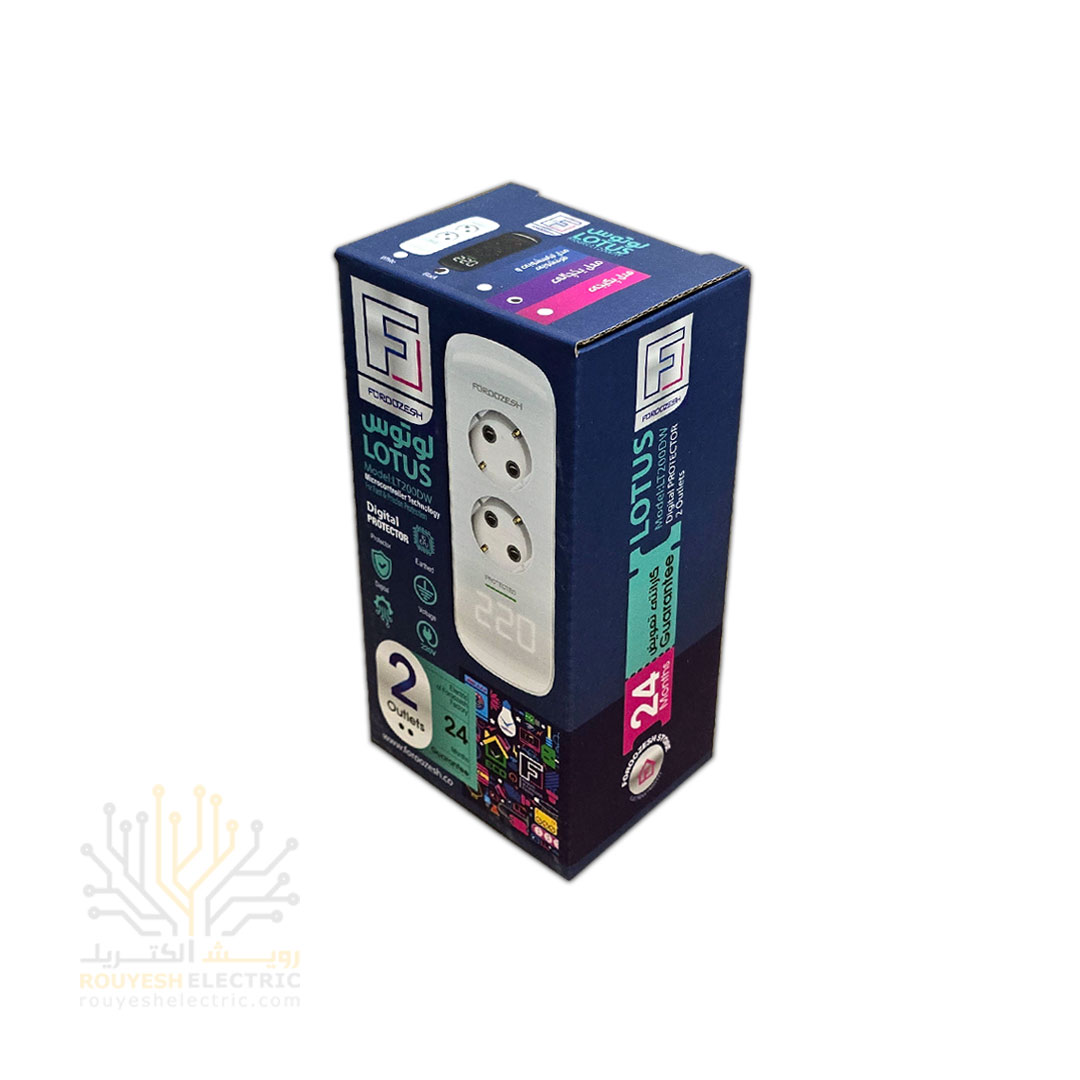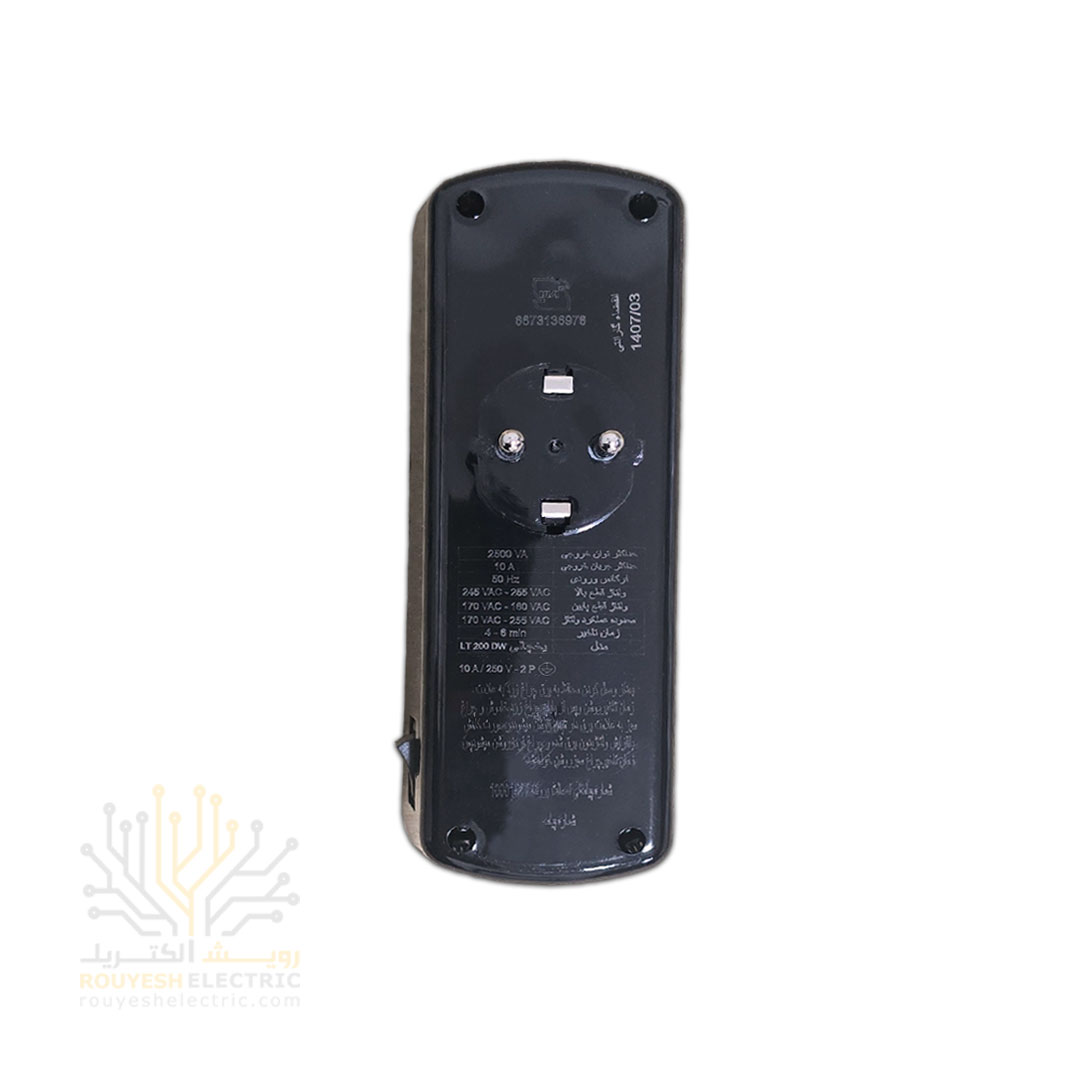 محافظ برق یخچال دیواری دو خانه برند فروزش مدل LT200W لوتوس ارتدار کلید دار بدنه مشکی آنالوگ