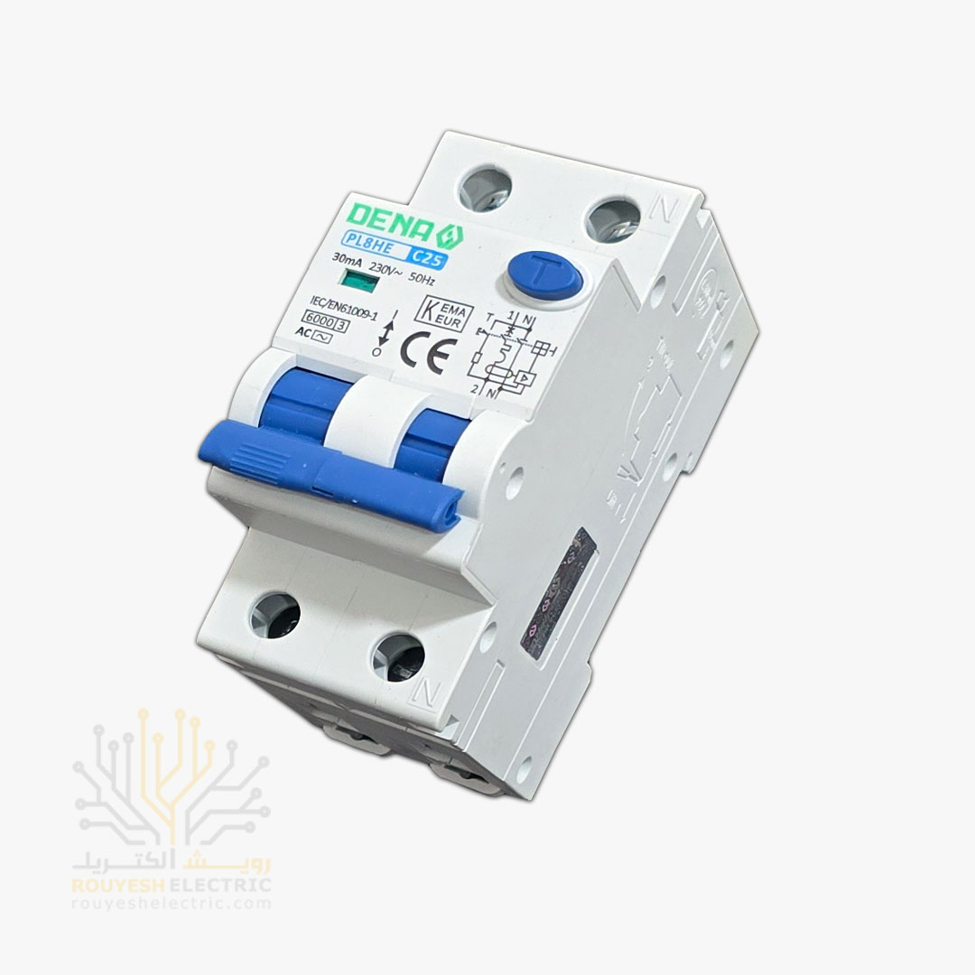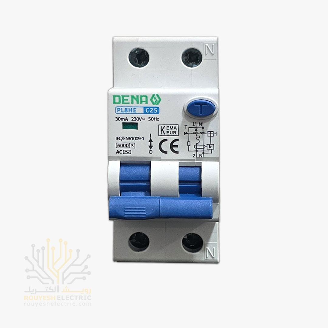کلید محافظ جان دوپل برند دنا تکفاز مدل RCCB مگنتیک 25 آمپر