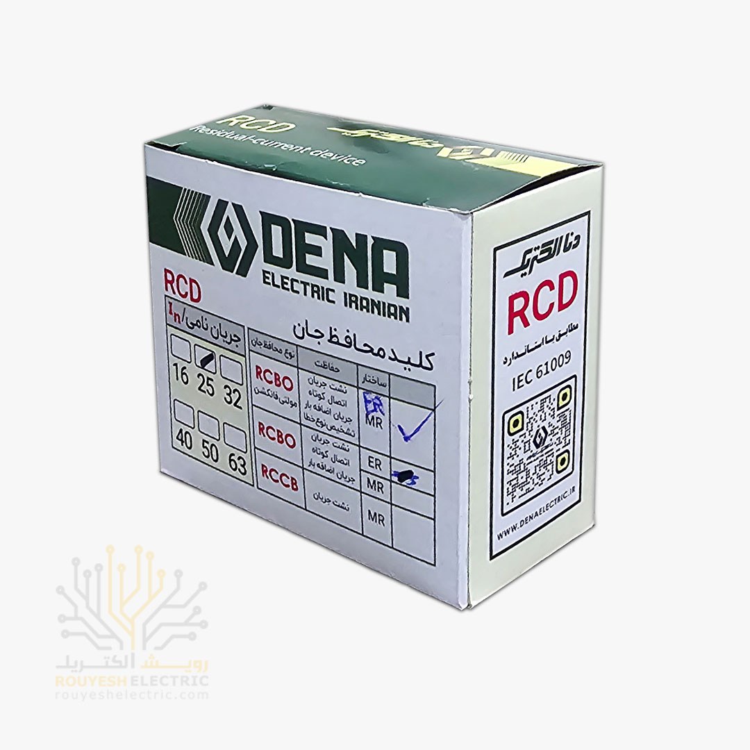 کلید محافظ جان مولتی فانکشن برند دنا تکفاز مدل RCBO الکترونیک 25 آمپر