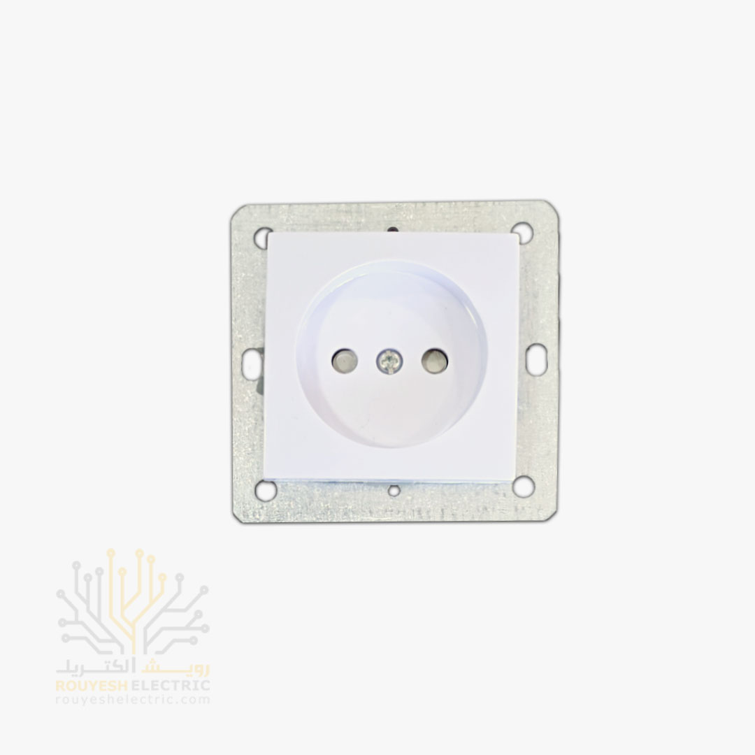 پریز برق ساده توکار برند رویان با مغزی پلی کربنات مدل پارس سفید بدون قاب