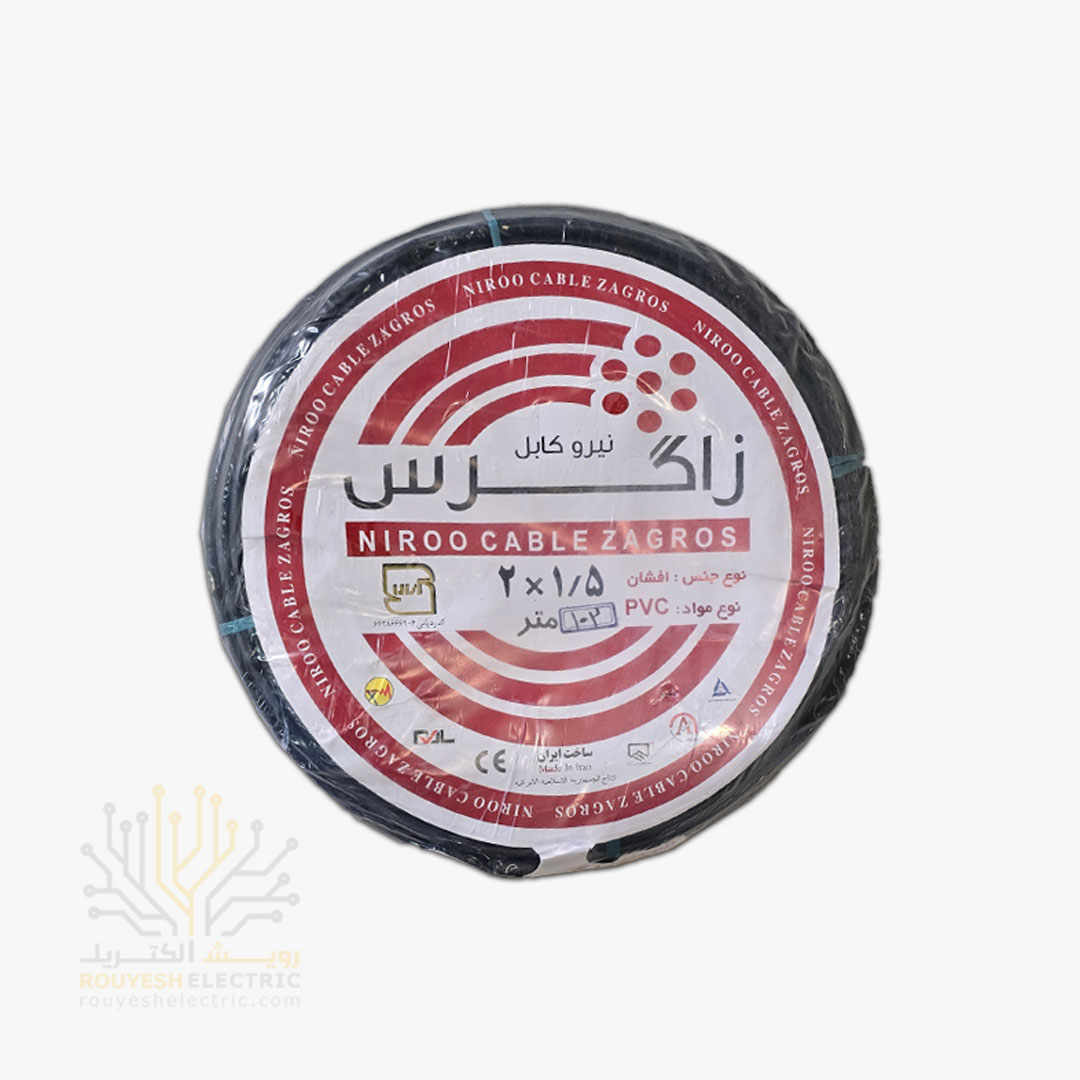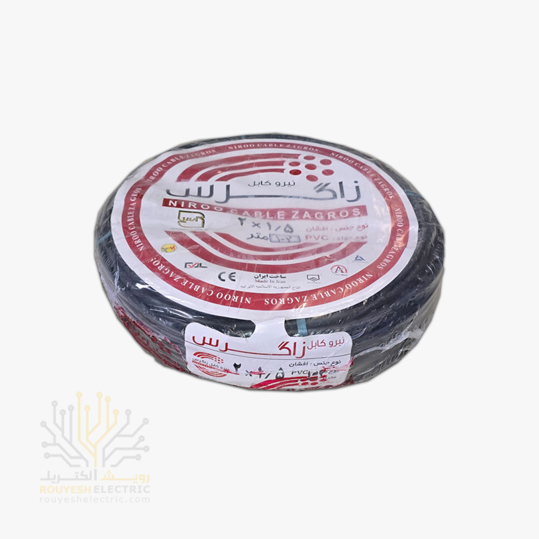کابل برق نمره 2x1/5 برند نیرو کابل زاگرس استاندارد حلقه 100 متری