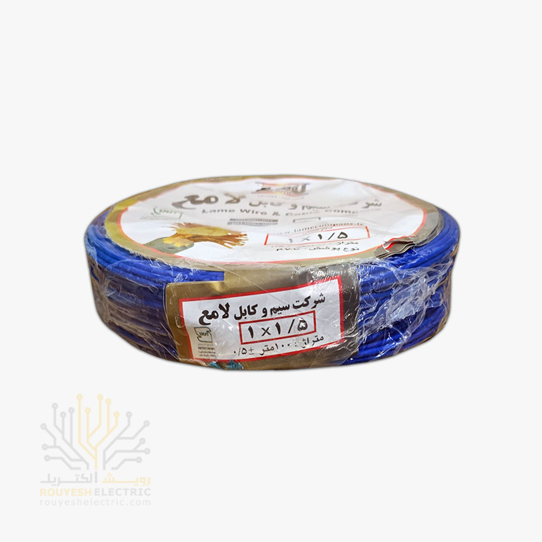 سیم برق نمره 1x1/5 برند لامع استاندارد رنگ آبی حلقه 100 متری