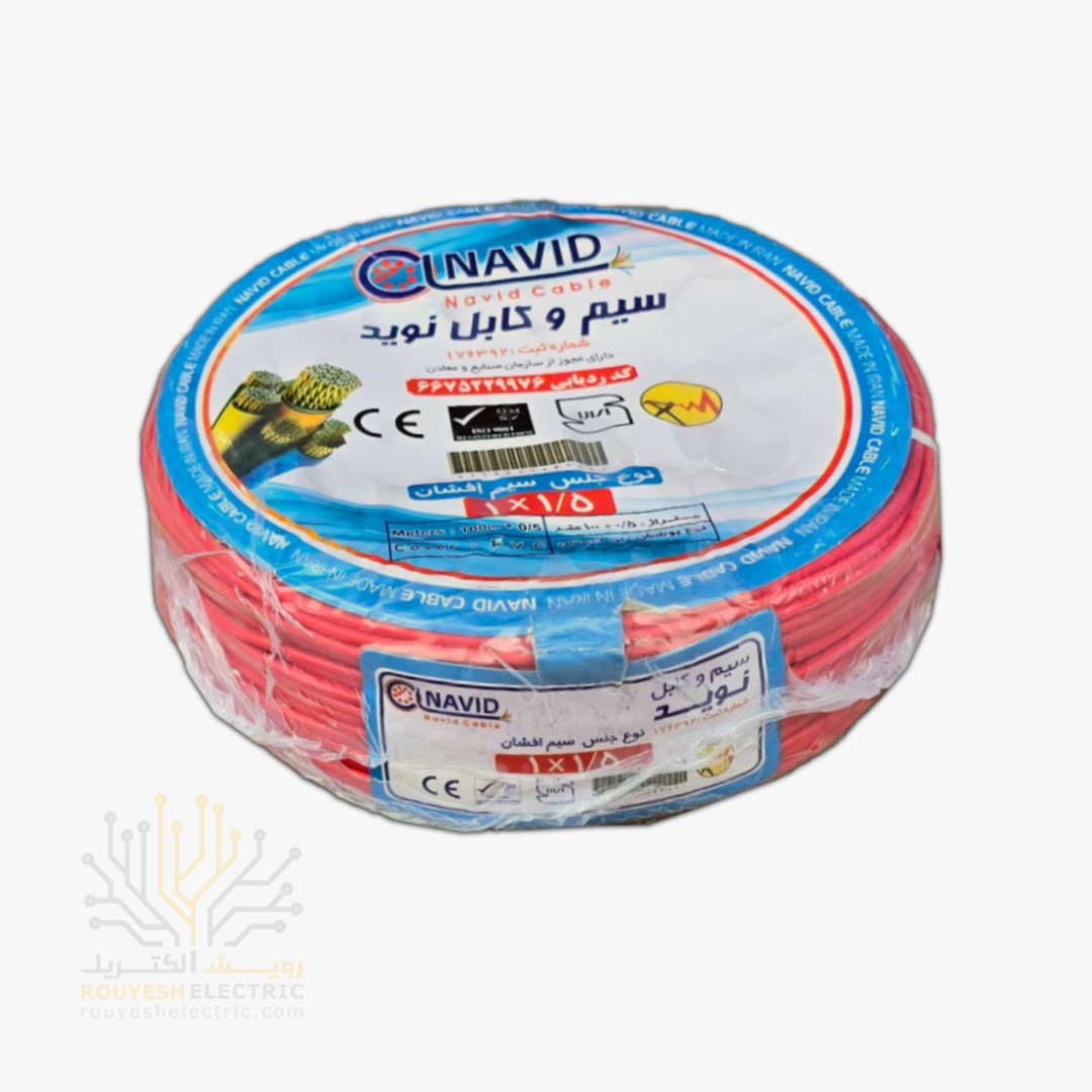 سیم برق نمره 1x1/5 برند نوید استاندارد حلقه 100 متری رنگ قرمز