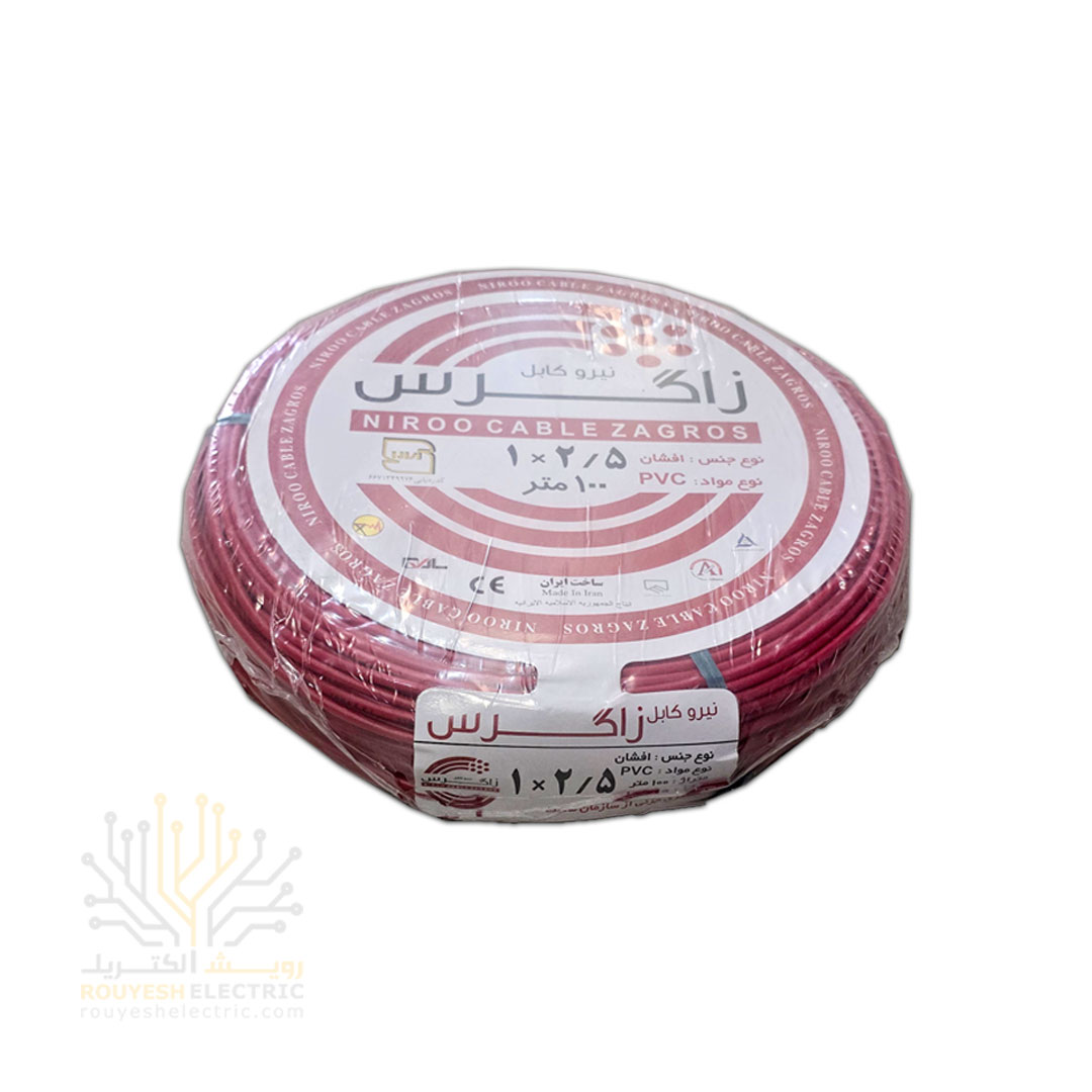 سیم برق نمره 1x1/5 برند نیرو کابل زاگرس استاندارد حلقه 100 متری رنگ مشکی