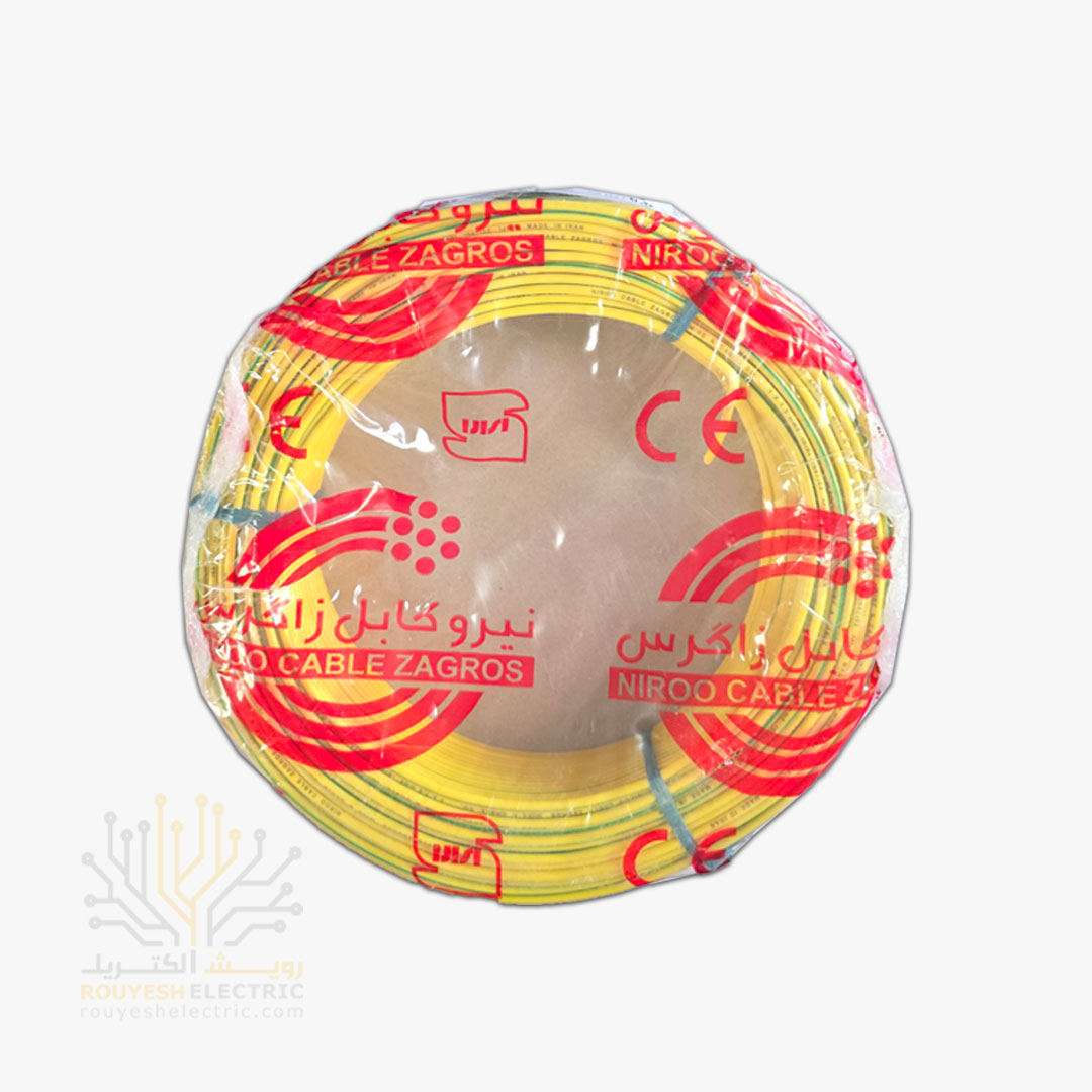 سیم برق نمره 1x1/5 برند نیرو کابل زاگرس استاندارد حلقه 100 متری رنگ ارت