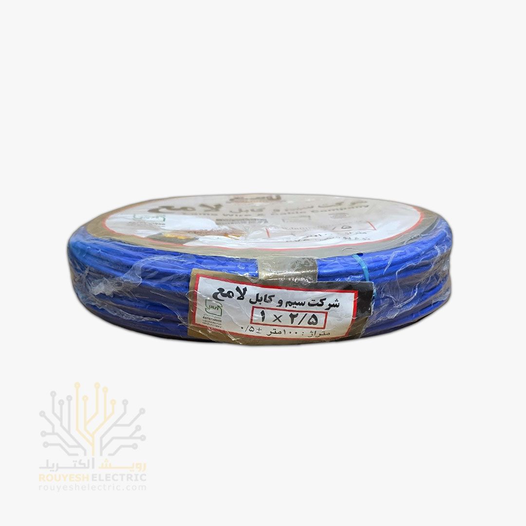 سیم برق نمره 1x2/5 برند لامع استاندارد رنگ آبی حلقه 100 متری