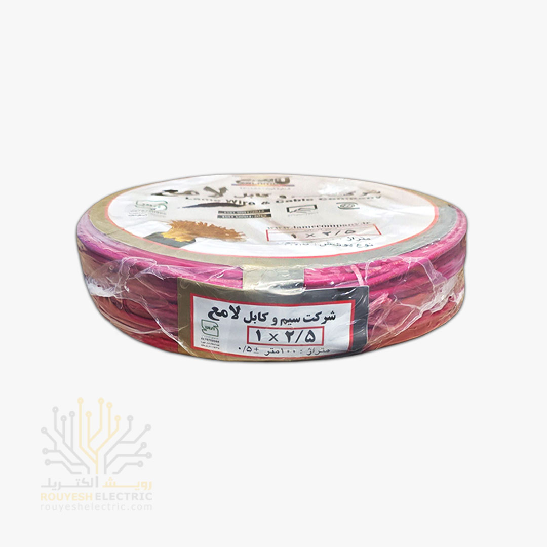 سیم برق نمره 1x2/5 برند لامع استاندارد رنگ قرمز حلقه 100 متری