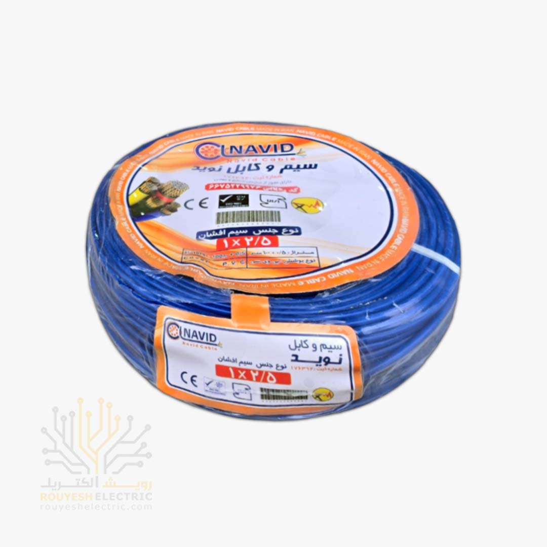 سیم برق نمره 1x2/5 برند نوید استاندارد حلقه 100 متری رنگ آبی