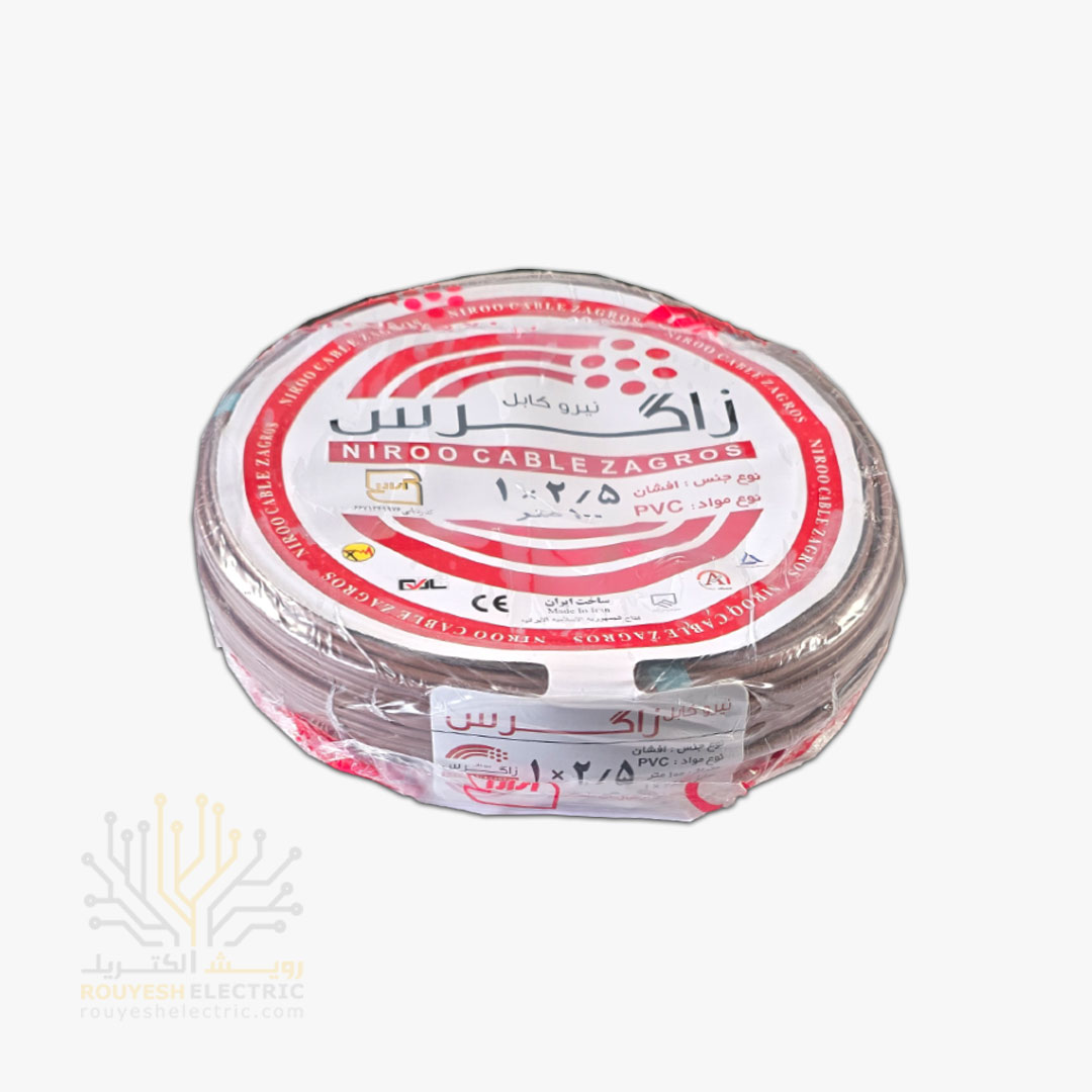 سیم افشان ۱×۲.۵ رنگ قهوه‌ای نیرو کابل زاگرس یک سیم تک‌رشته‌ای با سطح مقطع ۲.۵ میلی‌متر مربع است که با روکش PVC قهوه‌ای‌رنگ و مطابق با استاندارد ملی ایران تولید می‌شود. این سیم برای انتقال جریان برق در ولتاژ پایین و جریان‌های نسبتاً بالا طراحی شده و در موارد زیر کاربرد دارد: