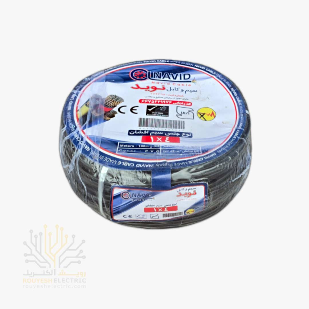 سیم برق نمره 1x4 برند نوید استاندارد حلقه 100 متری رنگ مشکی