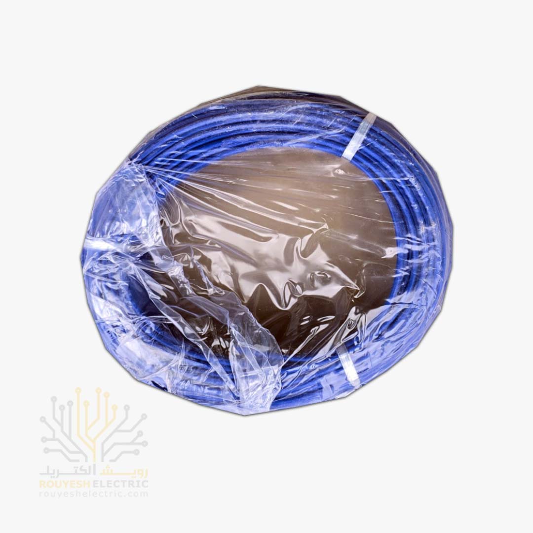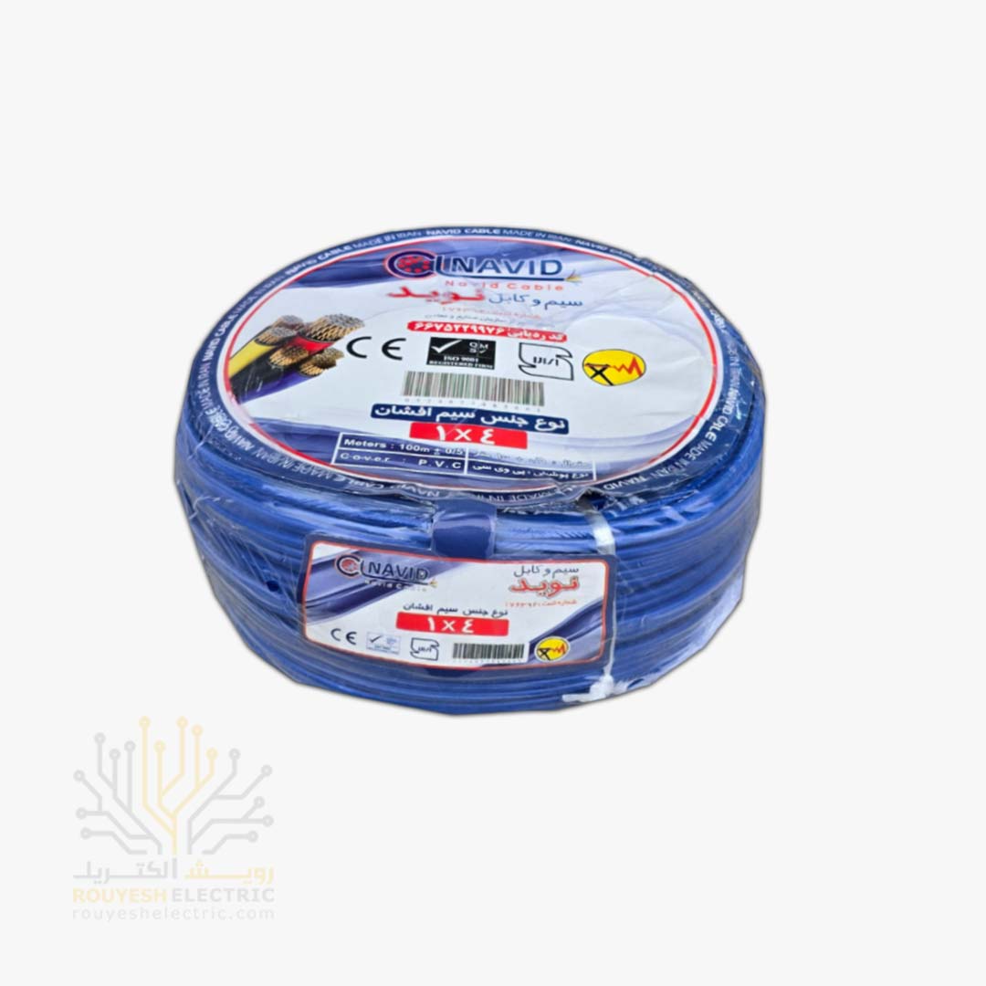 سیم برق نمره 1x4 برند نوید استاندارد رنگ آبی حلقه 100 متری