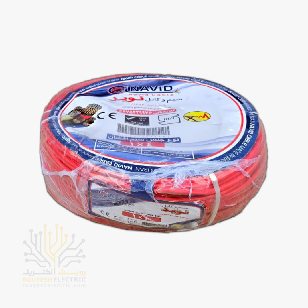 سیم برق نمره 1x4 برند نوید استاندارد رنگ قرمز حلقه 100 متری