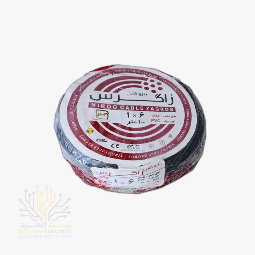 سیم برق نمره 1x6 برند نیرو کابل زاگرس استاندارد حلقه 100 متری رنگ مشکی موجود در شرکت ما تولید کشور ایران می‌باشد از جمله مزایای این محصول می‌توان به استاندارد بودن ، تنوع در رنگ ، نرم و انعطاف‌پذیر بودن مغزی مسی ، روشن بودن رنگ مس و روکش پلاستیکی با کیفیت اشاره کرد. این محصول دارای ضمانت سلامت محصول است که اطمینان خاطر مشتریان را نسبت به کیفیت جنس خریداری شده فراهم می‌سازد.