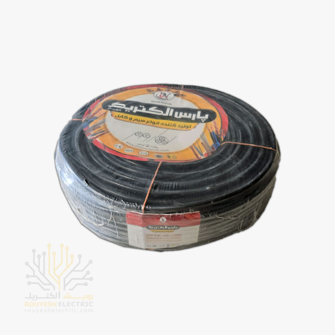 کابل برق نمره 2x6 برند پارس الکتریک استاندارد حلقه 100 متری