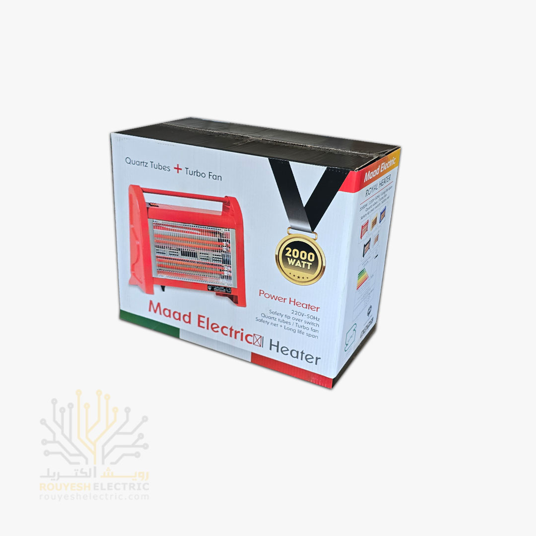بخاری برقی استاندارد برند ماد الکتریک مدل رویال 4 شعله 2000 وات فن دار بدنه کرم