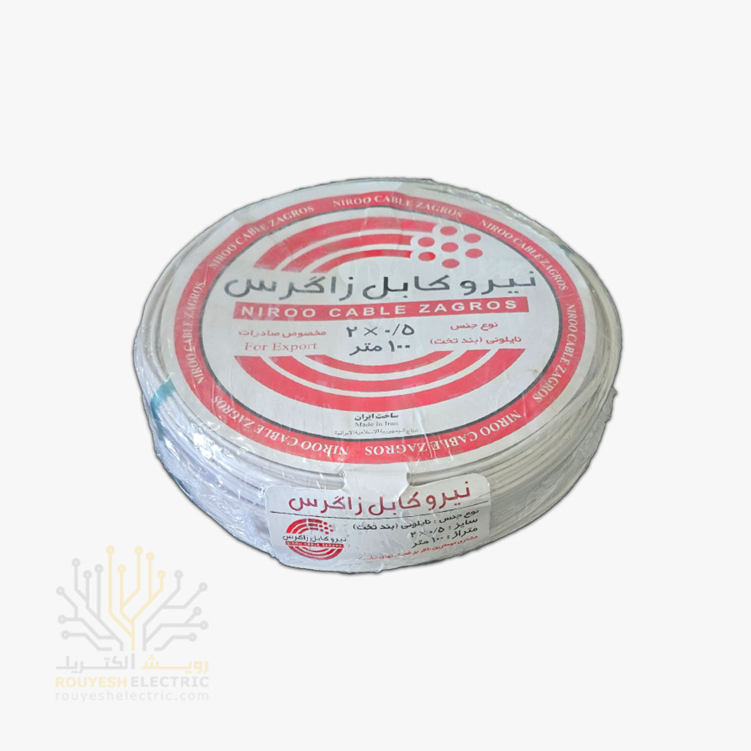 سیم برق نایلون نمره 2x0/50 برند نیرو کابل زاگرس حلقه 100 متری